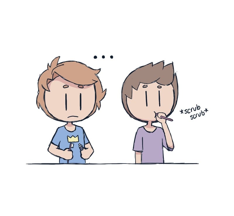 *gently puts toothpaste down* // I'm sorry again for the absences!! I know I only just started doing regular updates again! But I just got a second job and the only time I have to draw has been in the break-room on my lunch. The two-jobs thing is only temporary, though! I'll keep uploading as much as I can!!