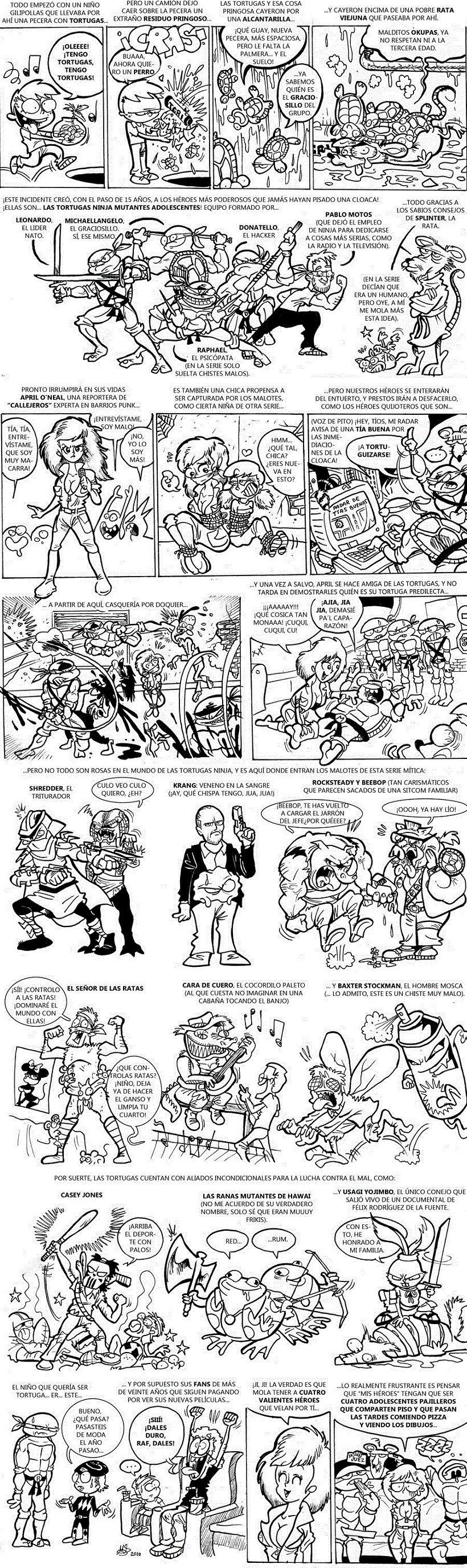 Esta es mi particular visión del mito de las Tortugas Ninja, creadas por Kevin Eastman y Peter Laird, en un mix en el que he sintetizado un poco del cómic original, la serie de los ochenta, las pelis en imagen real, la serie del siglo XXI y, como no, referencia a la última peli.