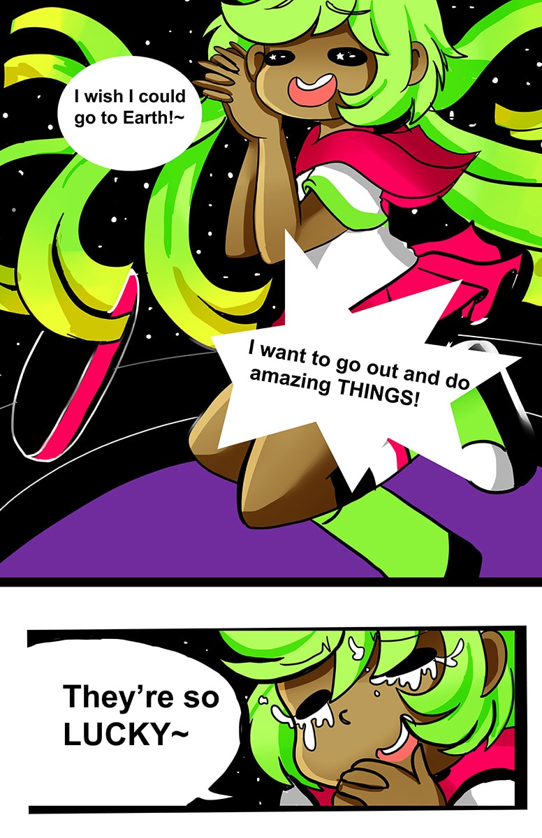 In the future, humankind on Earth experience an apocalyptic event which changed lives forever. Instead of bringing chaos, the catastrophe brought mankind together. Humans collaborated to colonize Mars in order to expand into the cosmos for refuge. They worked tirelessly to prevent the hostile extraterrestrials from invading again. To avenge those lost in the tragedy, three space police: Olive, Everett and Mau are on a mission to destroy the culprit.