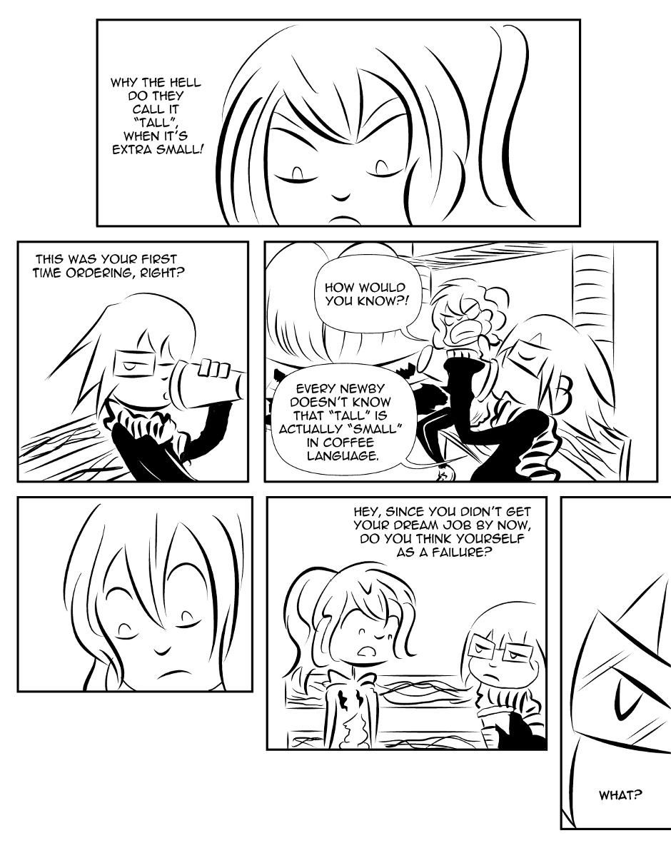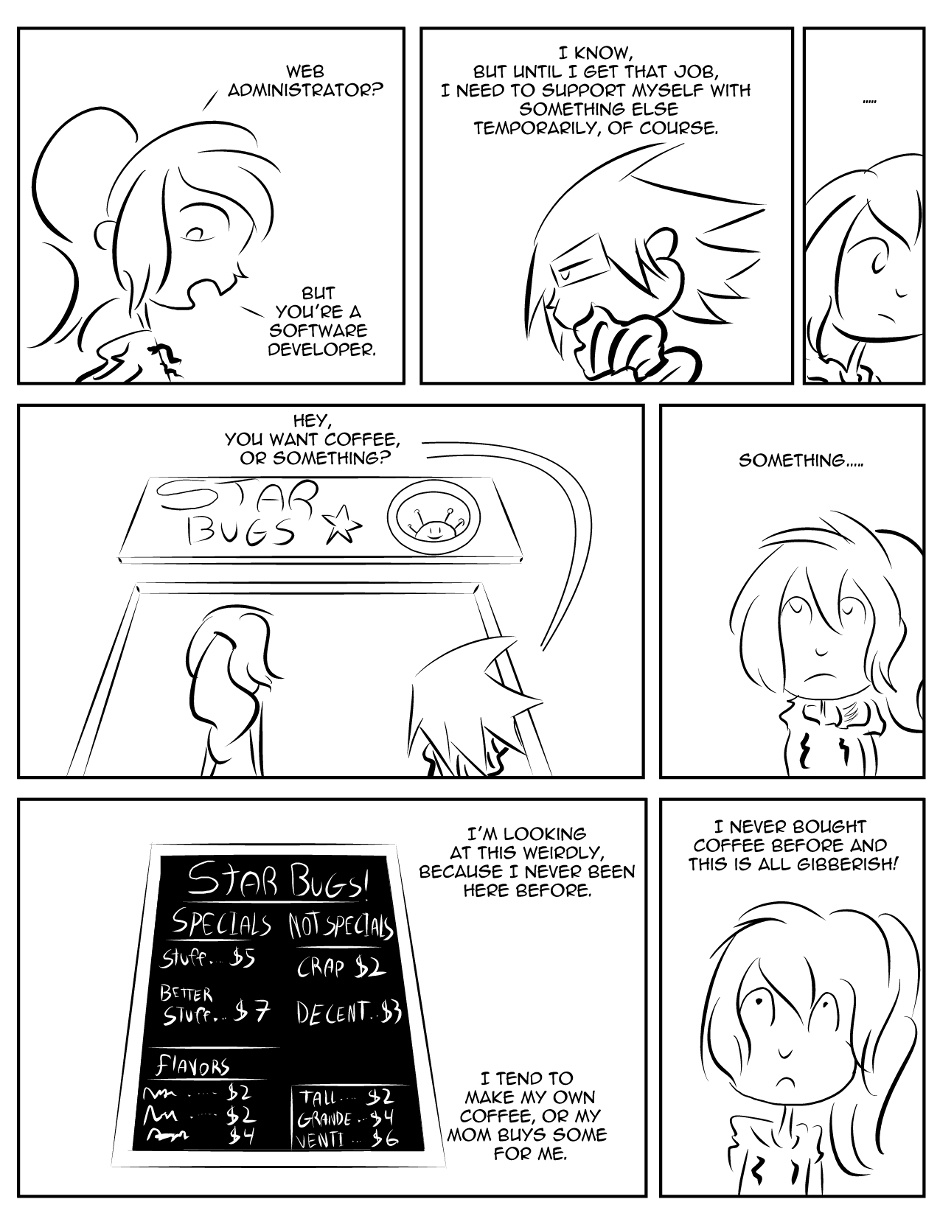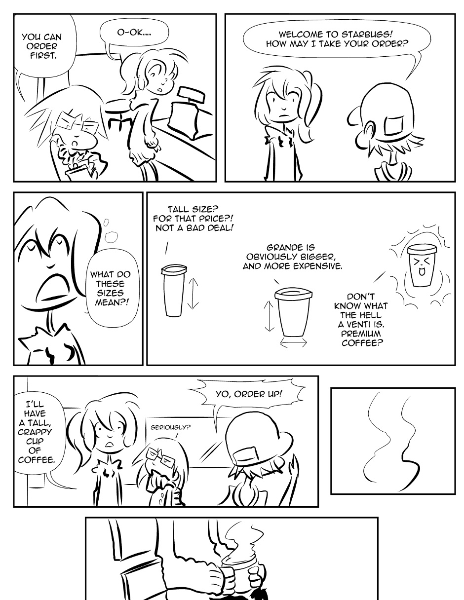 Karin hangs out with an old friend and has a crappy cup of coffee.
