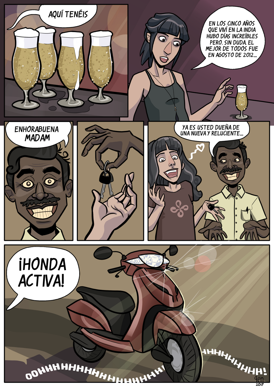 Si es que con unas cervezas ya una se anima a contar más historias. Esta comienza con una moto... ¡Una Moto! ¡¡aaa-moo-too!! La conducción en la India no es muy segura. Un colega decía que aquello era como un juego de conducción extrema en nivel mega-pro: con todos los obstáculos imaginables: vacas, búfalos, perros, gente, coches y motos en sentido contrario ¡a veces también los autobuses!, nada de visibilidad: cero farolas por la noche y todos los vehículos con las luces largas dadas en ciudad. Las carreteras destrozadas, rotas o inundadas dependiendo de la época y, en algunos días festivos, la peña tirándote polvos rosas a los ojos... ¡¡¡Bieeeeen!!!