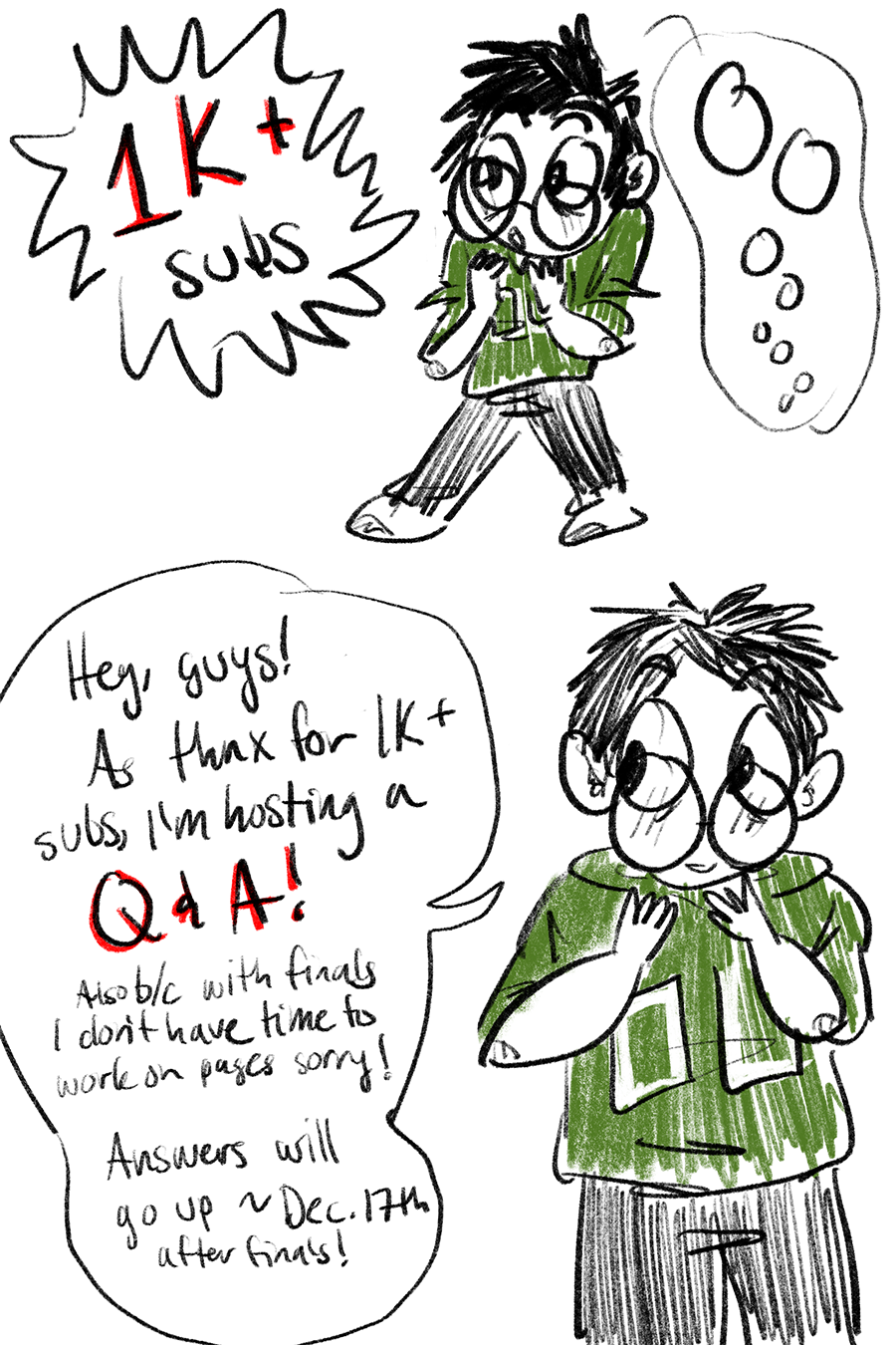 It's time for a Q&A!!! Shoot me whatever questions you have in the comments, and I'll answer them once finals are over!!! I'll try to get around to posting them on the week of Dec. 17th, so there's lots of time! I wanna do something cool as a thanks for all your guys' patience and for subscribing and commenting, it means the world to me <3