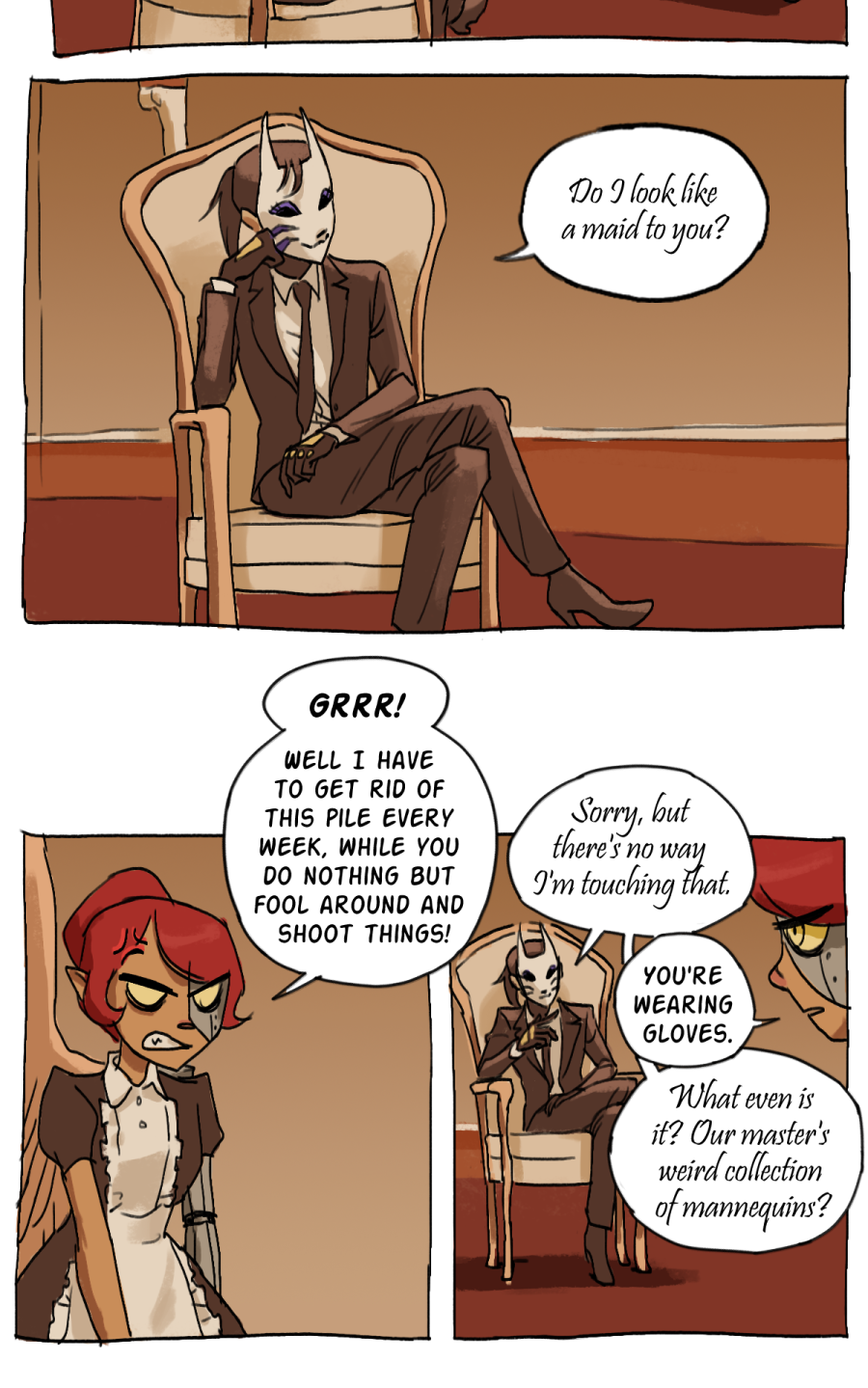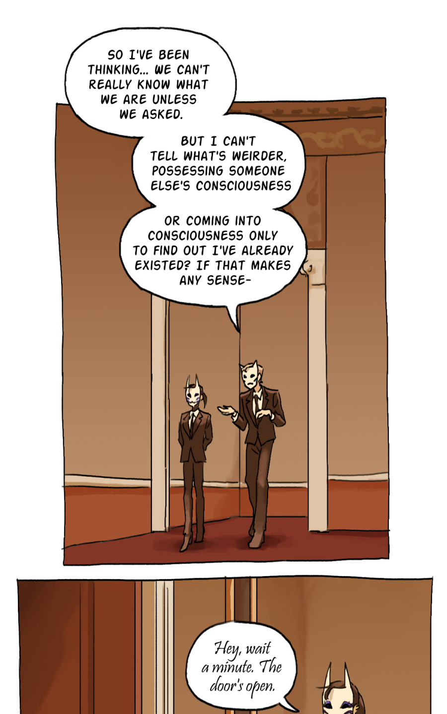 A pair of masked heroes wake up in the castle of an Archdemon, given the task to protect their master at all costs. However, things don't go as planned. This is a comic about alter egos, aliens, murder, memory repression, and finding your place in a universe that hates you.