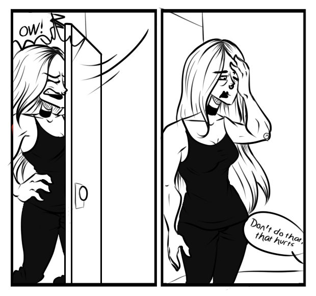 Whenever she says ow casually, that's always his response