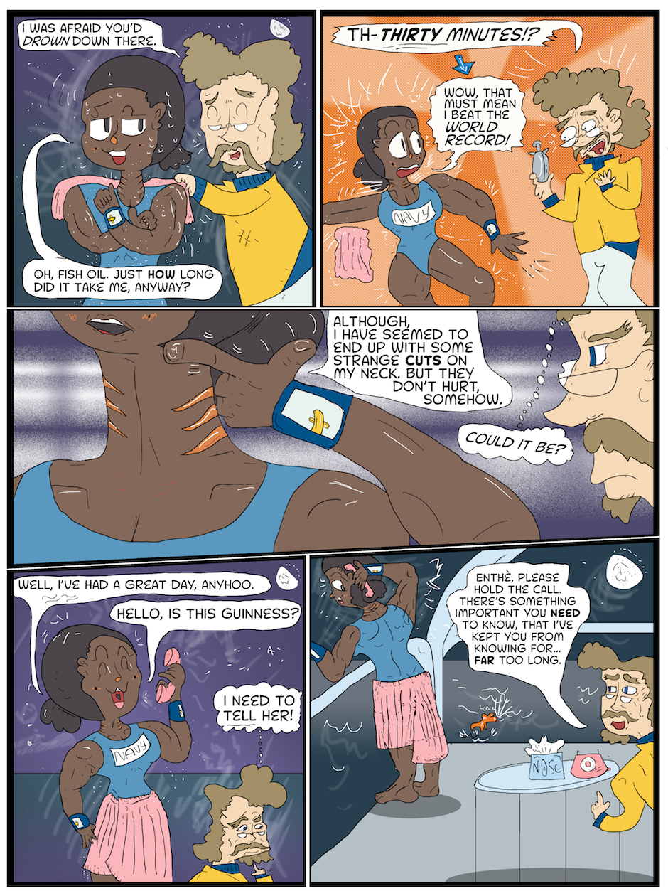 Enthè Navy survives her dive for the other bracelet, now wearing both of the bracelets nonetheless. She continues to be proud when she finds out just how long she was underneath the waves.