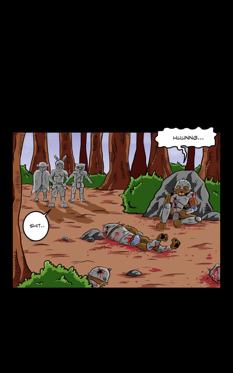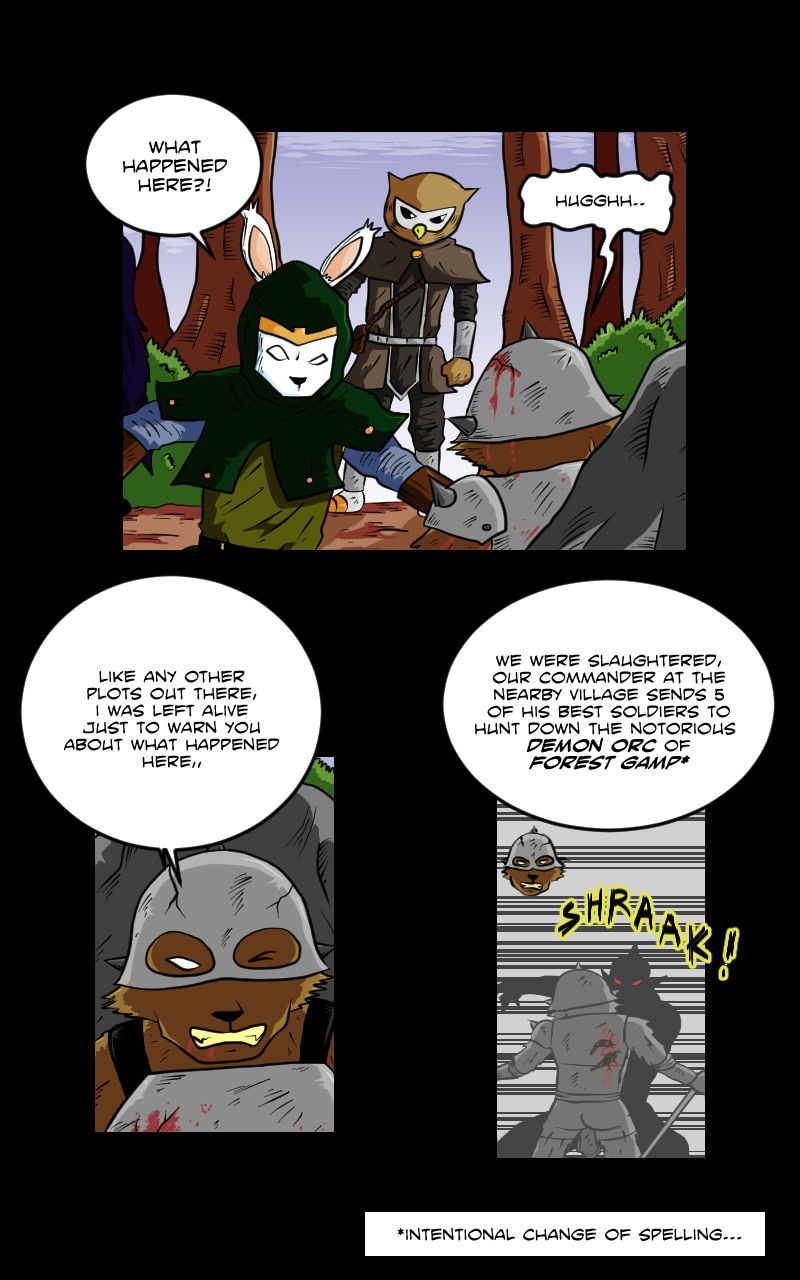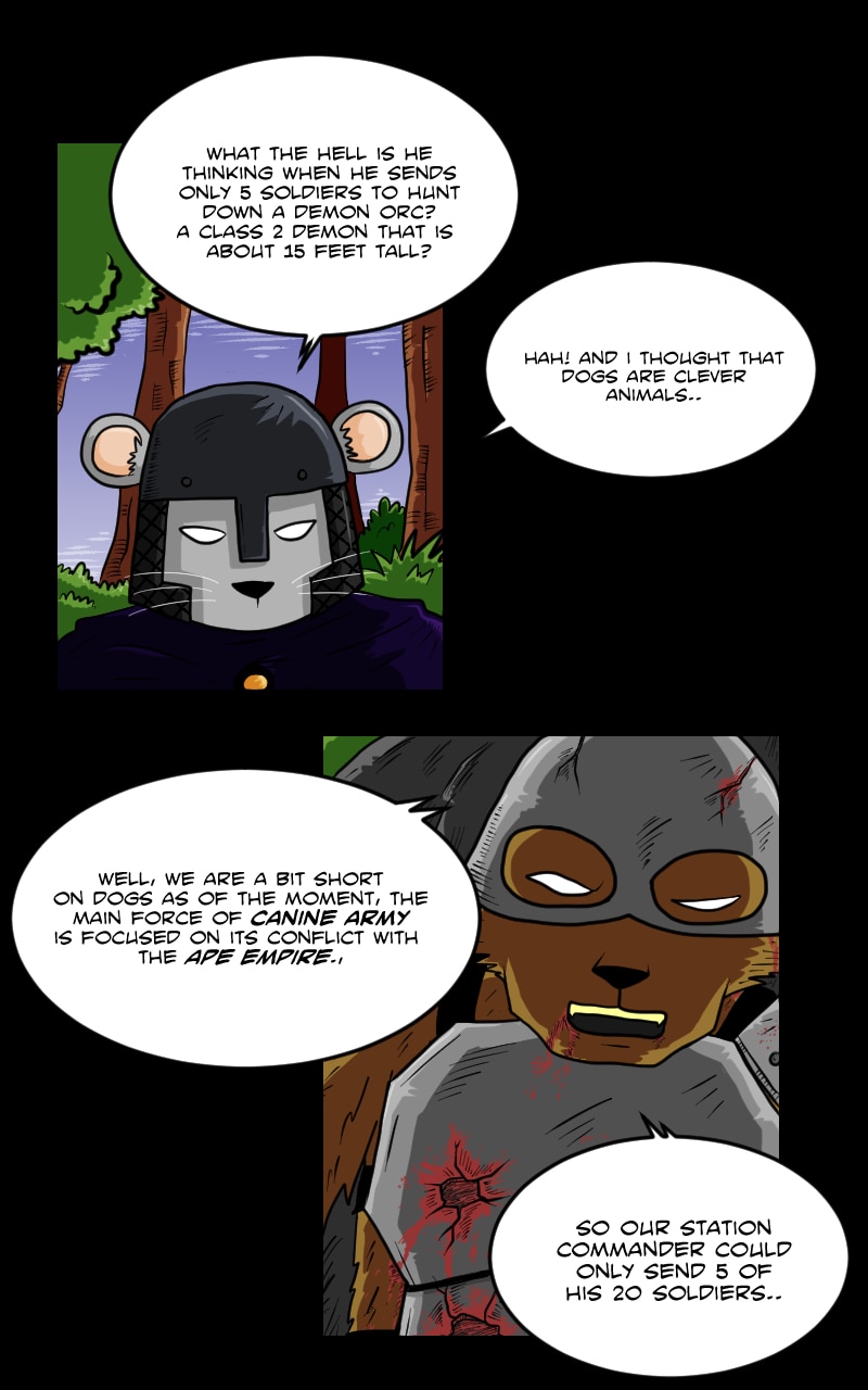if you're wondering where are the corpses of the demon imps, I manage to think of an explanation of that instead of admitting that I am a very lazy artist, imps in the story are cannibal demons. if they win a battle, the remaining imps will collect and eat their fallen comrades..