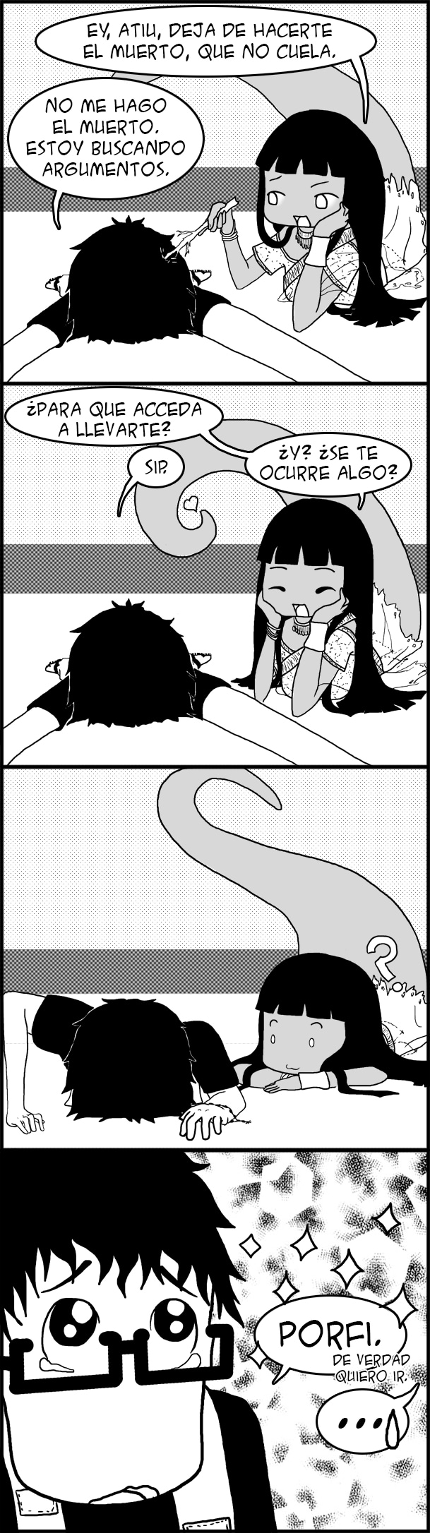 Atiu es muy inteligente, pero no muy listo, y sólo se le ocurre un único gran argumento: ¡rogar!