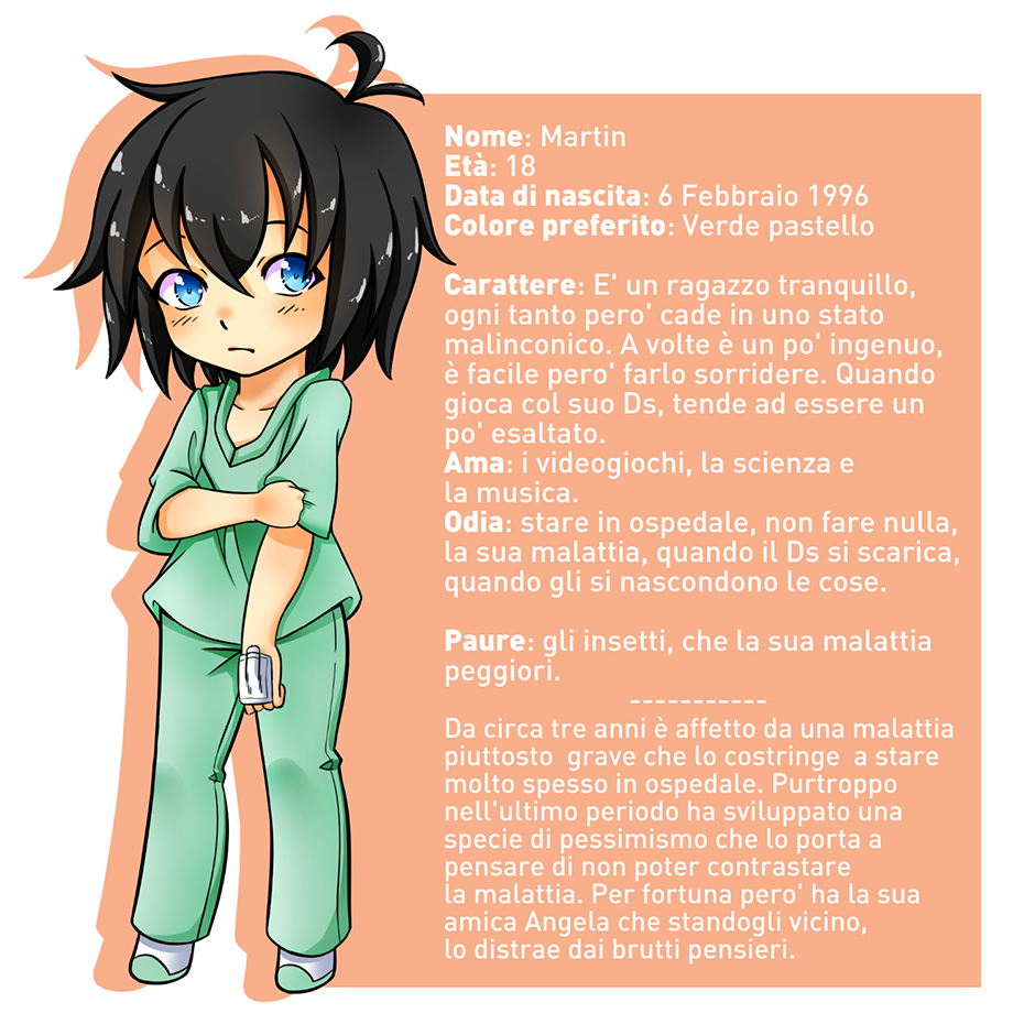 Martin è un ragazzo di 18 anni che, per via di una malattia piuttosto grave, è costretto per la maggior parte del tempo in ospedale.