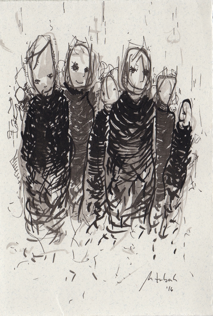 Framed MLIBTY drawing, ink on paper, 17x12 cm, 2016. (Frame is 25x20 cm, with glass).