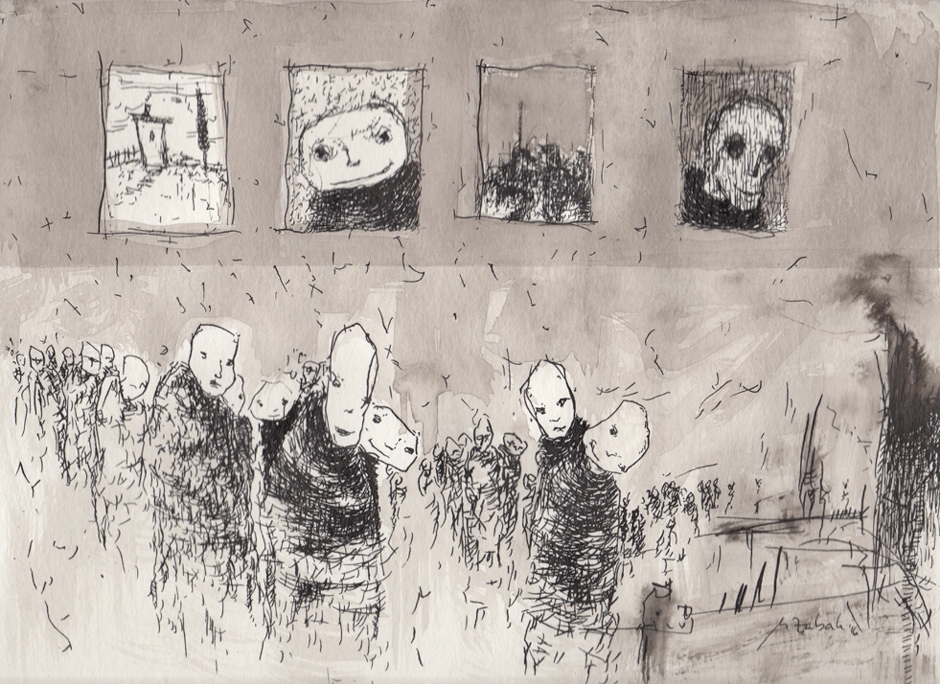 MLIBTY drawing, ink on paper, 23x30,5 cm, 2016. (Paper is Fabriano Torchon, 300g/m2).