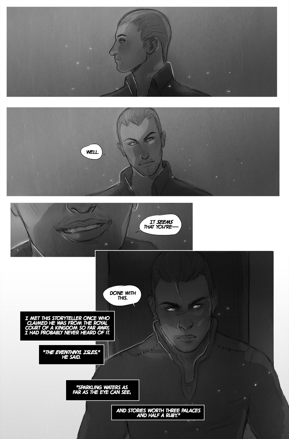 I'm so sorry for not updating for almost 2 months, I've been busy with stuff and I had to give up on Lest for a while. This black and white style is one I've been developing for a while and even though I'm not sure whether I can make it work completely, I think it fits the story and will allow me to work quicklier through each page while keeping the right atmosphere. I'll still have some colored pages here and there but if this allows me to update regularly (and not have you forget about the comic LOL) then I'll choose it over the alternative.