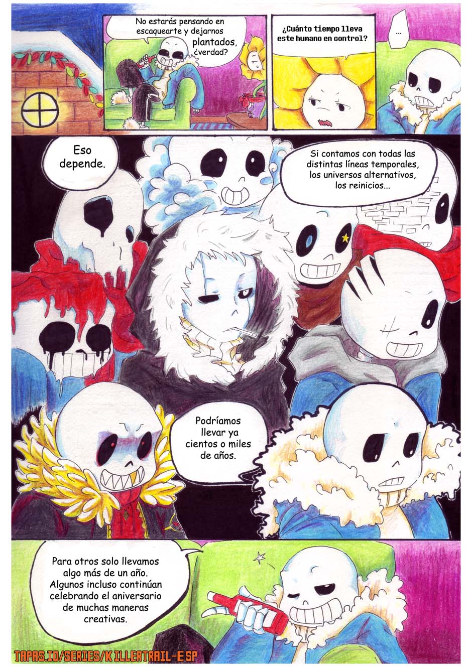 Pequeño cameo de distintos AU´s * Aftertale Geno * Echotale * Flowerfell underfell * Outertale * Sixbones * Inktale * y el sans de los 3 cortes es dePost-tale. Un AU en deviant art : http://truewinterspring.deviantart.com/gallery/58515288/Post-tale