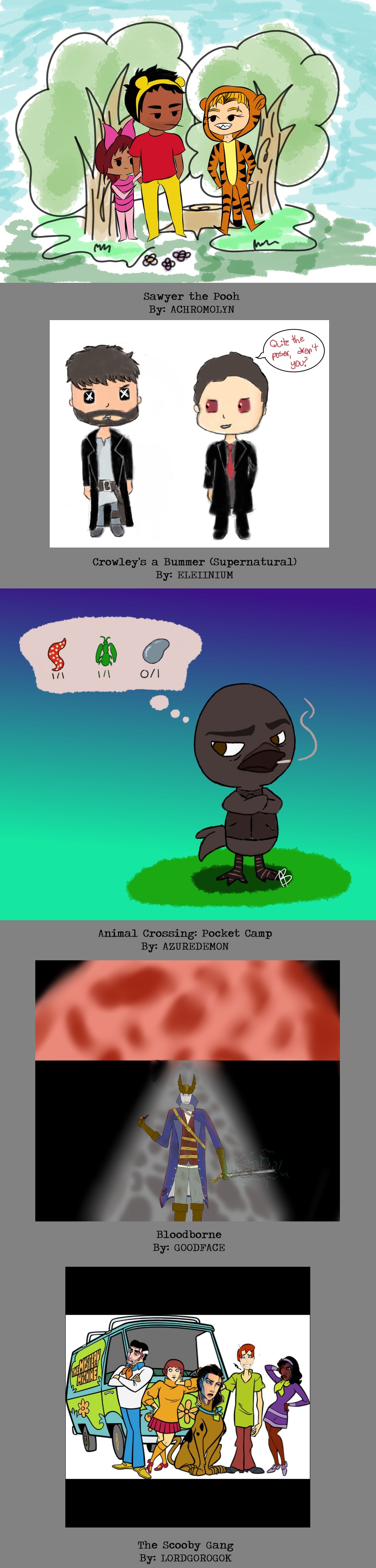 I don’t wanna get all mushy with you guys but Flynn and I are reeling from the amount of creativity, effort, and talent that went into these entries. From the very first few submissions we were like - we’ve made a grave mistake. This was a PHOTO finish. Til about an hour ago, Flynn and I were still going back and forth on five different entries for first place. I hope you all come back for contest number two – especially those of you who like to write.