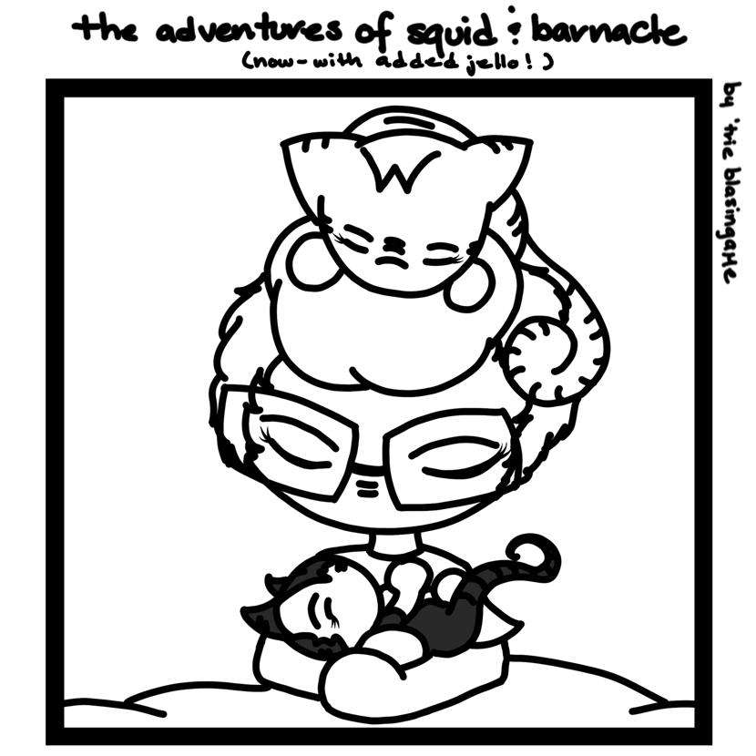 (jello is such a troublemaker, & barnacle is so insistent upon sitting upon me in weird ways *hands*)