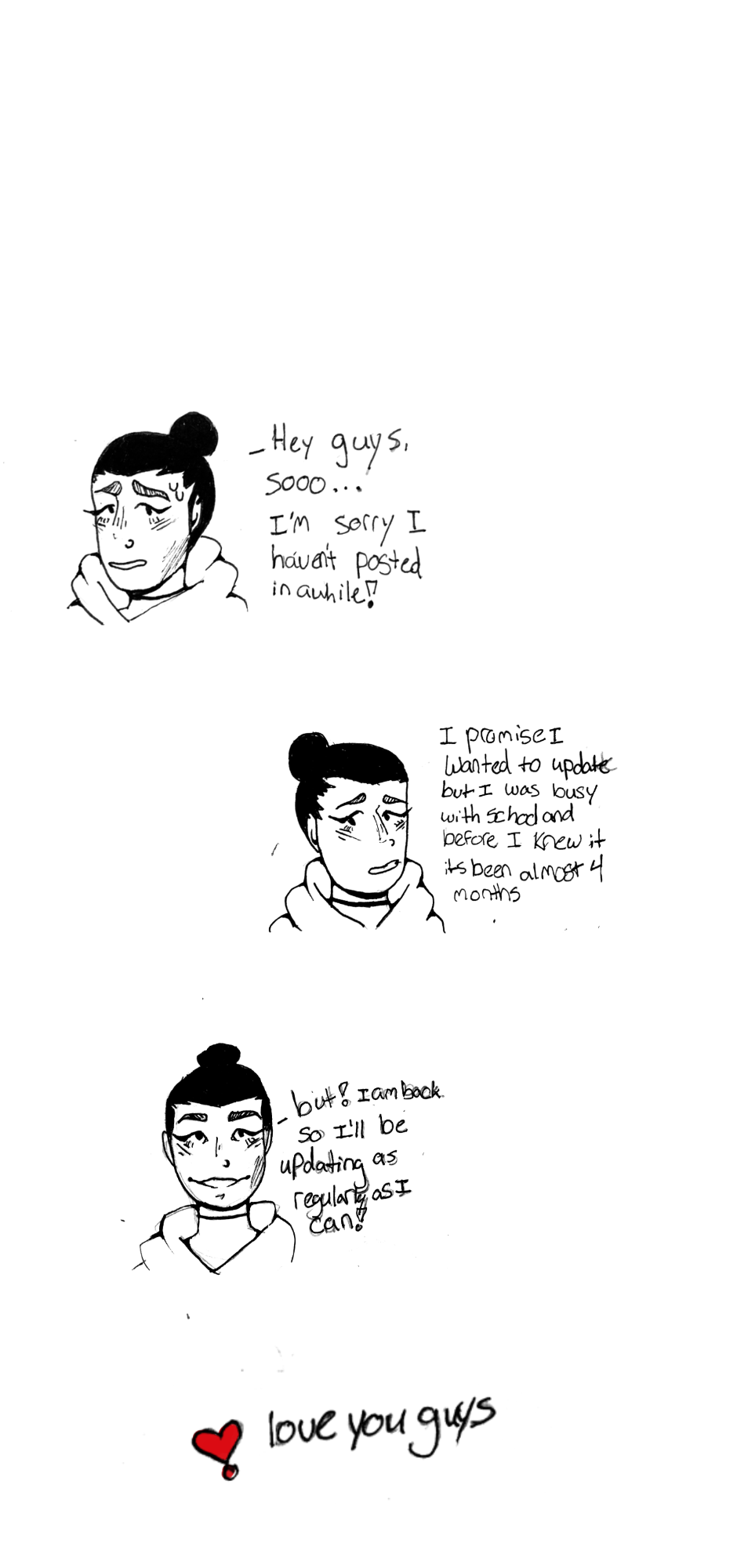 Hey guys!! I am SO SORRY i haven't posted in a while, i got so caught up with school and i just forgot to post, but im back now!! This is a short chapter because i just wanted you to know im back but the next chapter is going to be longer i promise!! thank you for supporting me, love you guys <3