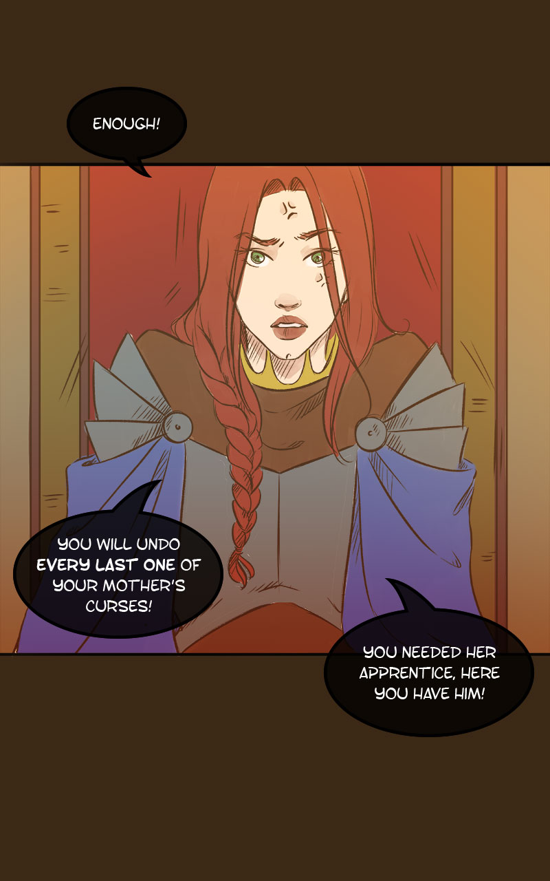 "My mistakes are not yours." Belladonna is a young witch without a license to do magic. She tries to make a living in a world that still remembers the cruelty of her mother, The Bane of the East, the infamous witch who terrorized the king and his army for years. The only one who didn't fear her -and might help Belladonna out- is Rhys, the villain's former apprentice...