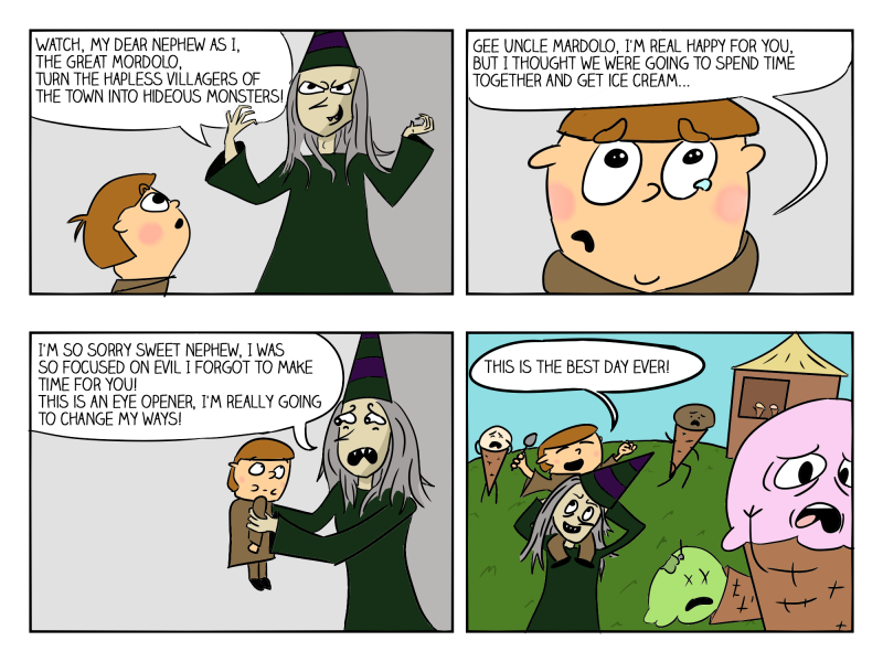 A workaholic wizard realizes that there's one thing more important than causing death and destruction. Family. And causing death and destruction with family.