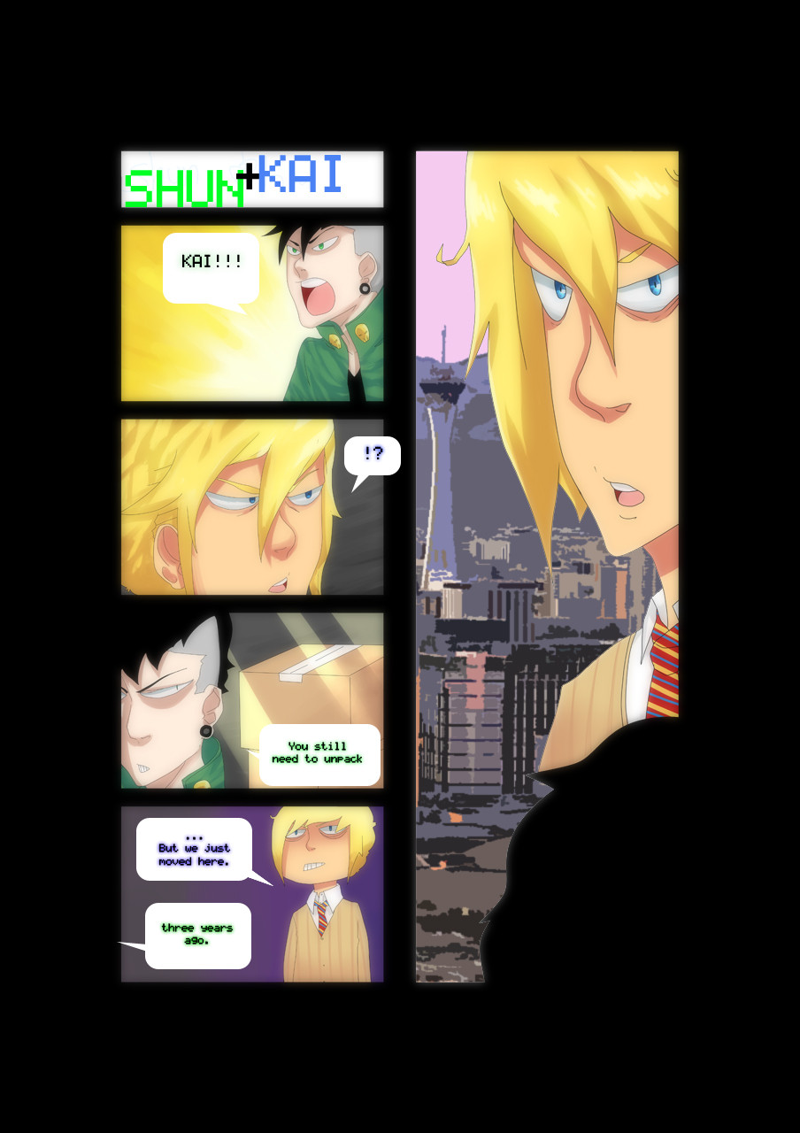 Meet Kai and Shun. Roommates one school year ahead everyone else. Kai is an airhead and a prestigious a-hole. Shun is a hardcore goth. well... that's kinda strong. He's just a hardcore rebel. Be ready to see a lot more of them. (they were going to be their own series, but lovable side characters seemed better.