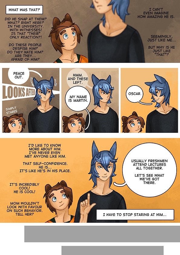 There are two types of people in this world: people in the usual sense and those who have animal features, such as tails and horns. Martin, the central character, belongs to the “tailed minority” discriminated by ordinary people. Martin, who is a boy of facil nature, has to learn how to survive, living alongside unfriendly race.