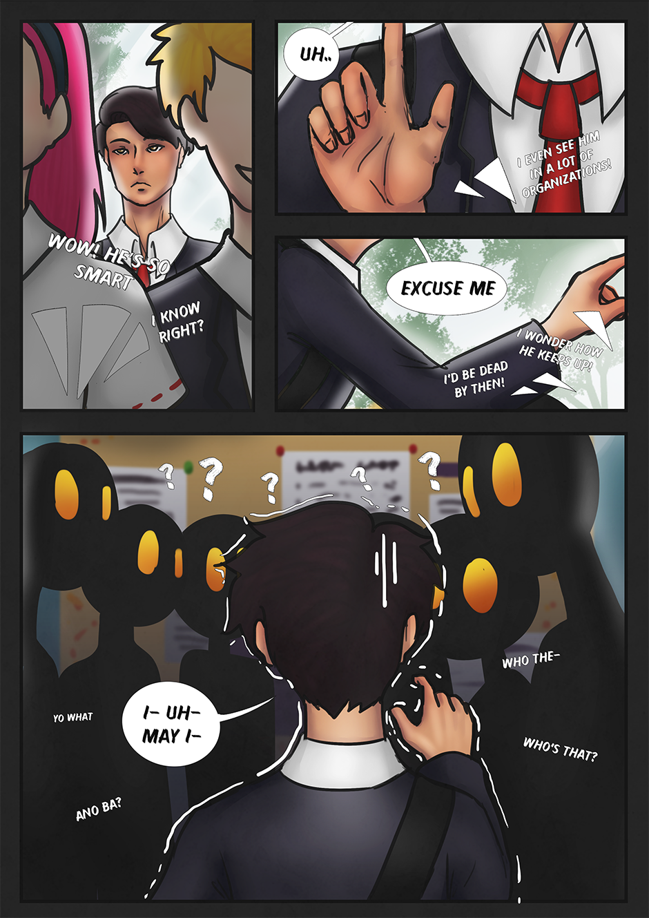 Hey! Happy New Year! Wow. My schedule is being coincidentally on track with holidays. I'm back with the second page! Tune in for the third page next week! Translations from Filipino to English: "Ano ba?" = 'What's the deal?' or somewhat like that expression