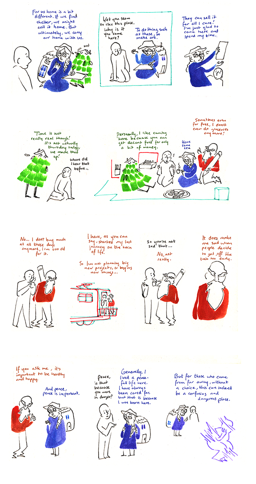 Based on my conversations with regular visitors from a creative center for the homeless.