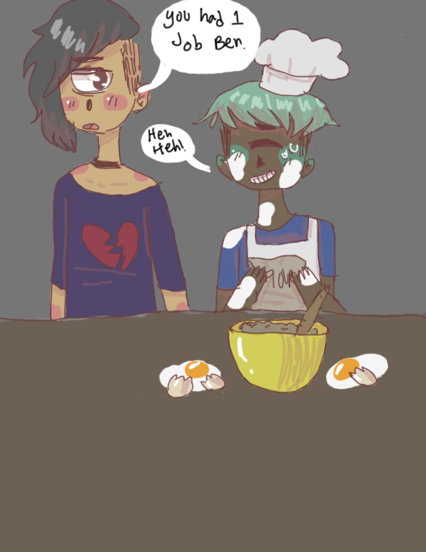 First art: Ben and Jet! I was doing some baking so I drew this! Second art: This is a free commission I did for $kulleton (https://tapas.io/skullbean). If you want me to do a free commission for you, ask! :3