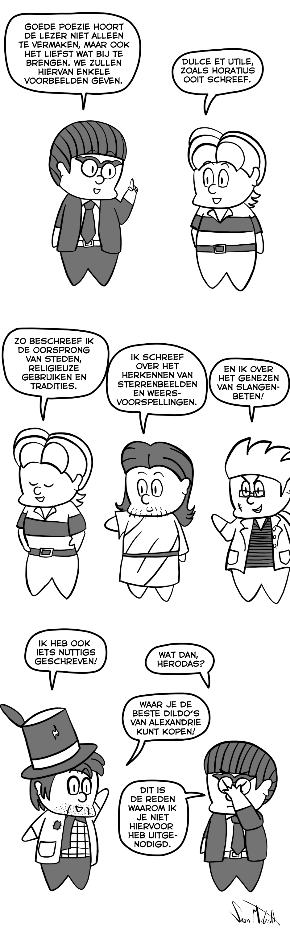 Een strip over de avonturen van de Hellenistische dichters in hun pogingen om zo obscuur mogelijke verwijzingen te maken naar uitgestorven dialecten, lokale tradities en vergeten poëzie.
