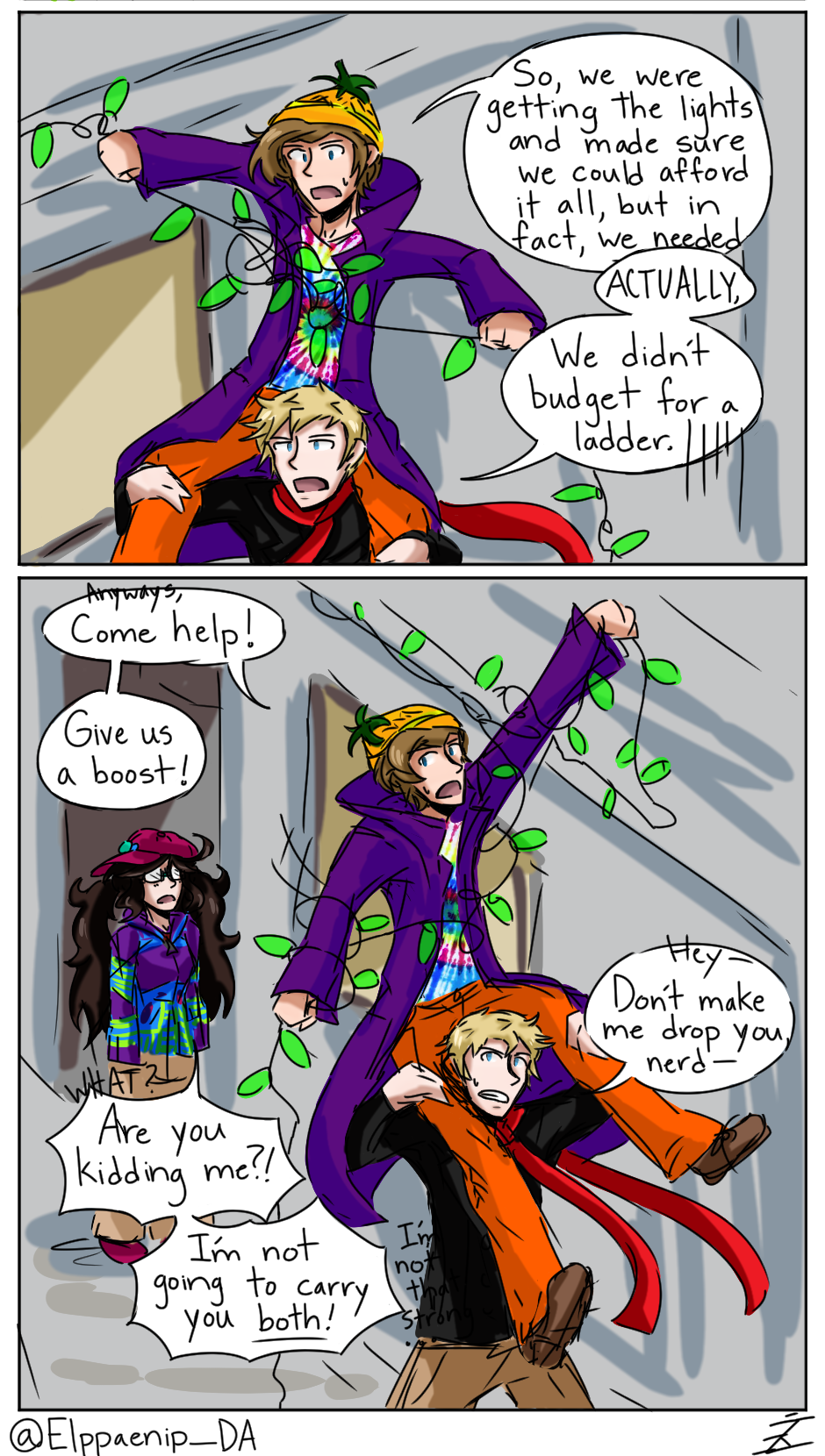 Hanging Christmas lights on the roof within budget somehow worked? (Also, the days of chaos will be continuing through Christmas day, as the EDA has scheduling trouble, hahah...)