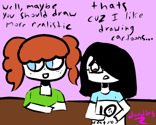 I find that a lot of people associate a good artist as someone who has mastered realism, but I don't think that's true because stylizing something into cartoons is very difficult and is a complete different skill set