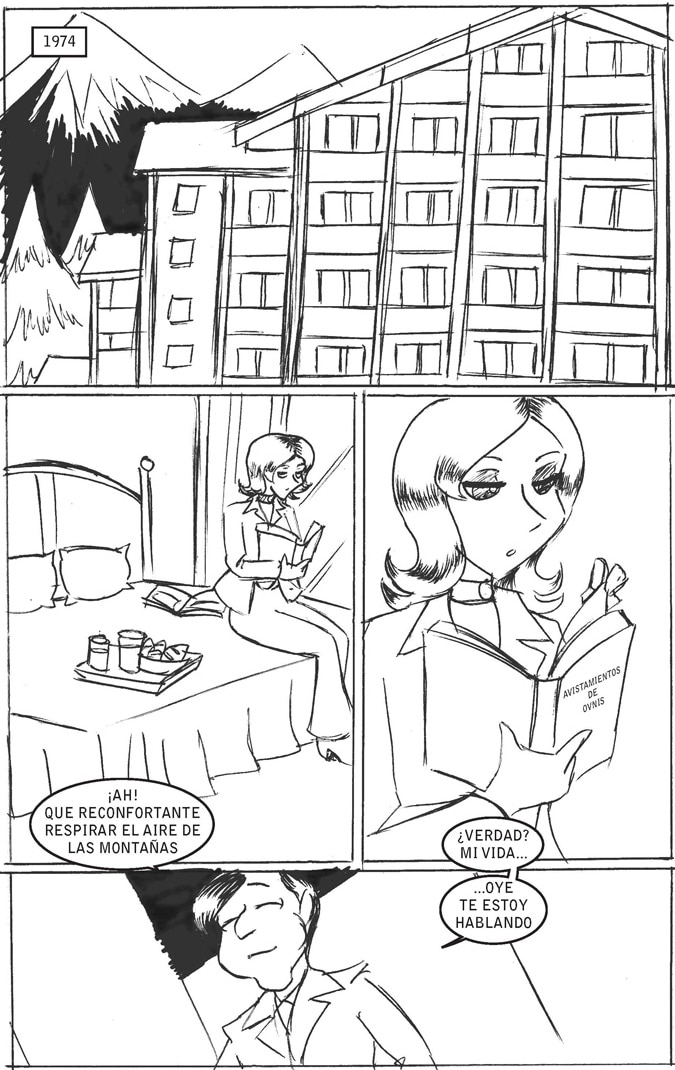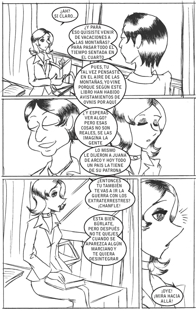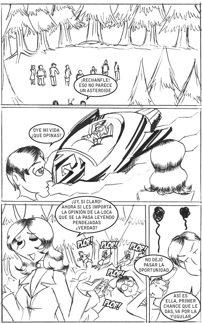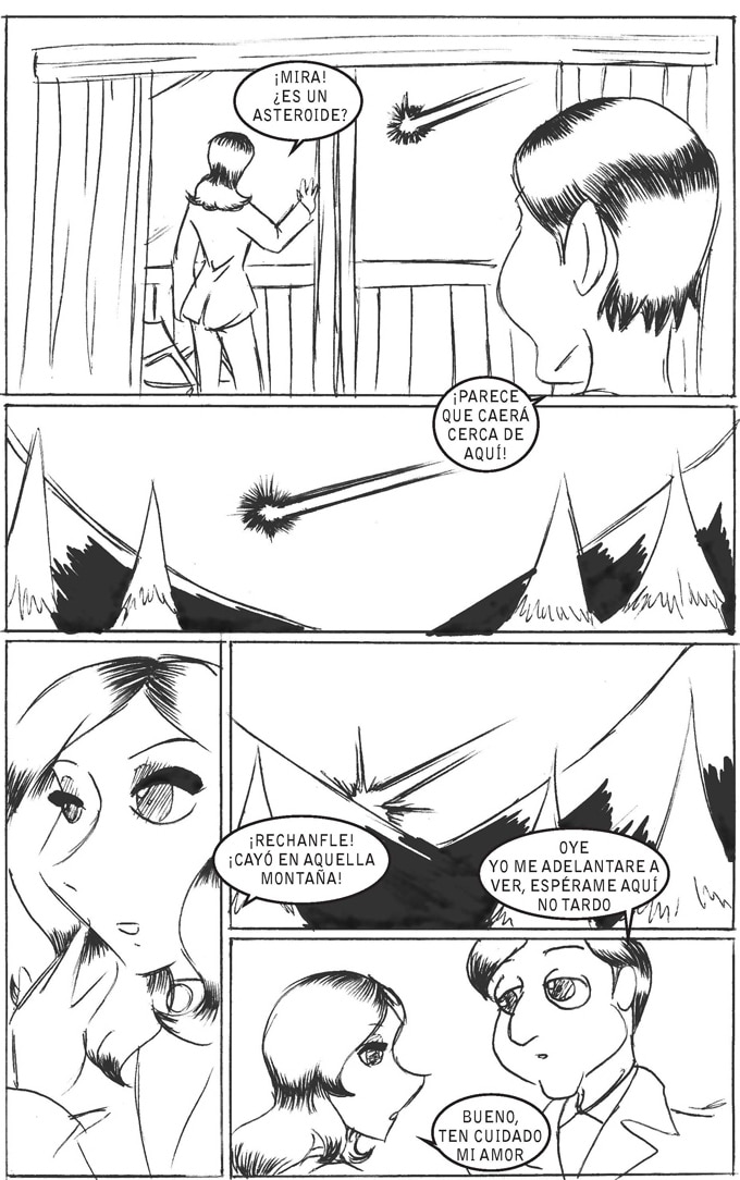 Una pareja de vacacionistas nota que en las montañas cae una capsula espacial con un extraterrestre abordo