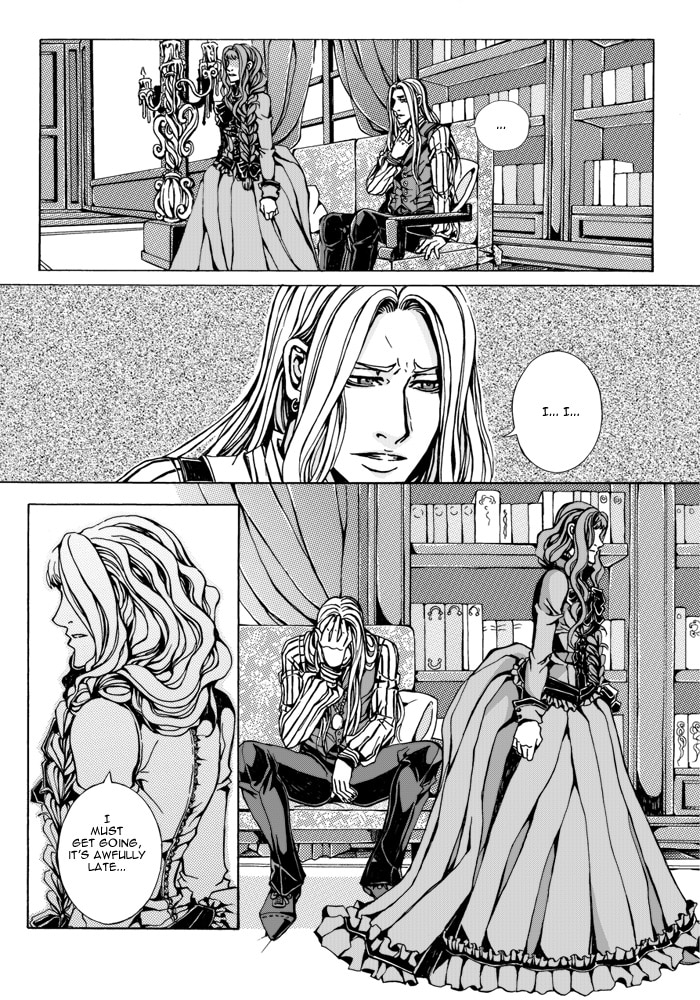 Elizabeth is in an unwanted engagement with Kenneth, an arrogant man whose good looks do nothing to improve her opinion of him. She finds solace in a secret friendship with Lawrence, a quiet, mysterious man who lives in the manor next door, but strangely, can only be found there at night. As she gets to know both men better, she slowly starts developing feelings for both of them, and soon finds herself with her life on the line, caught in a love triangle between a vampire and a vampire hunter [It's like Pride and Prejudice meets Dracula]