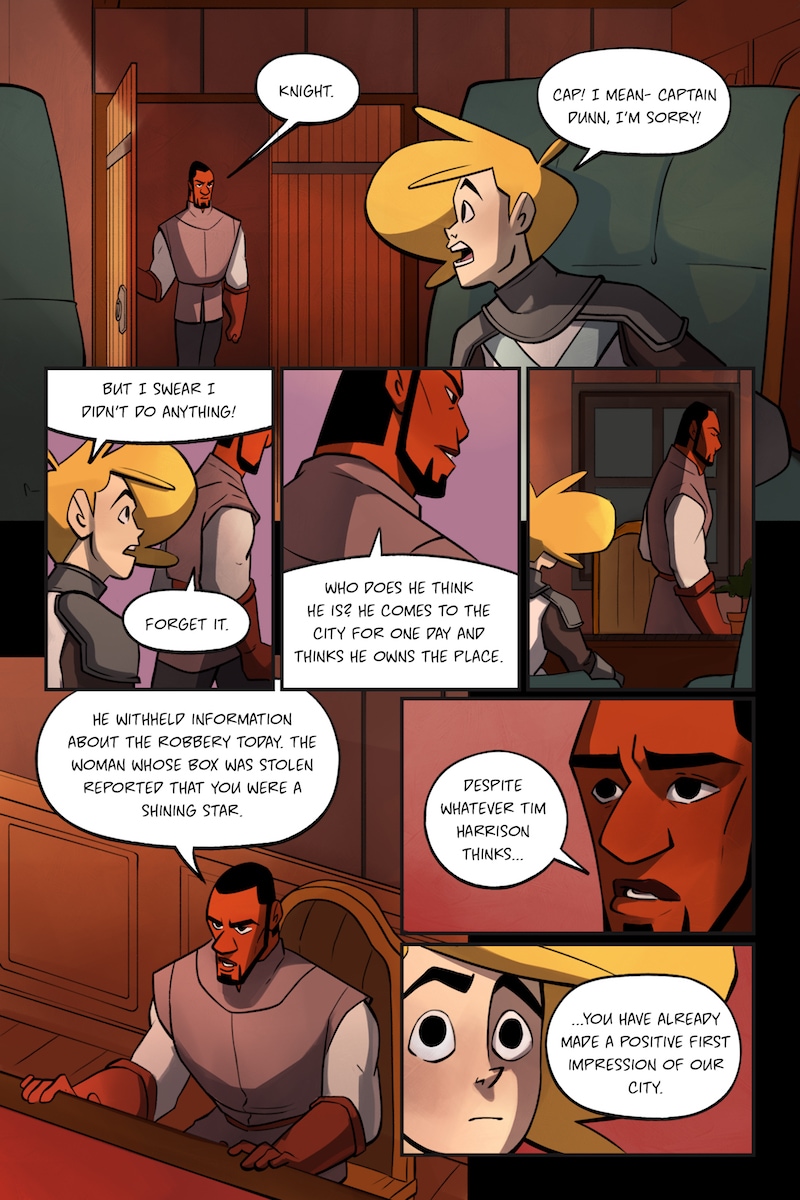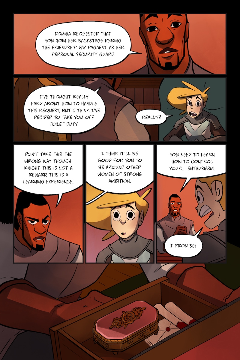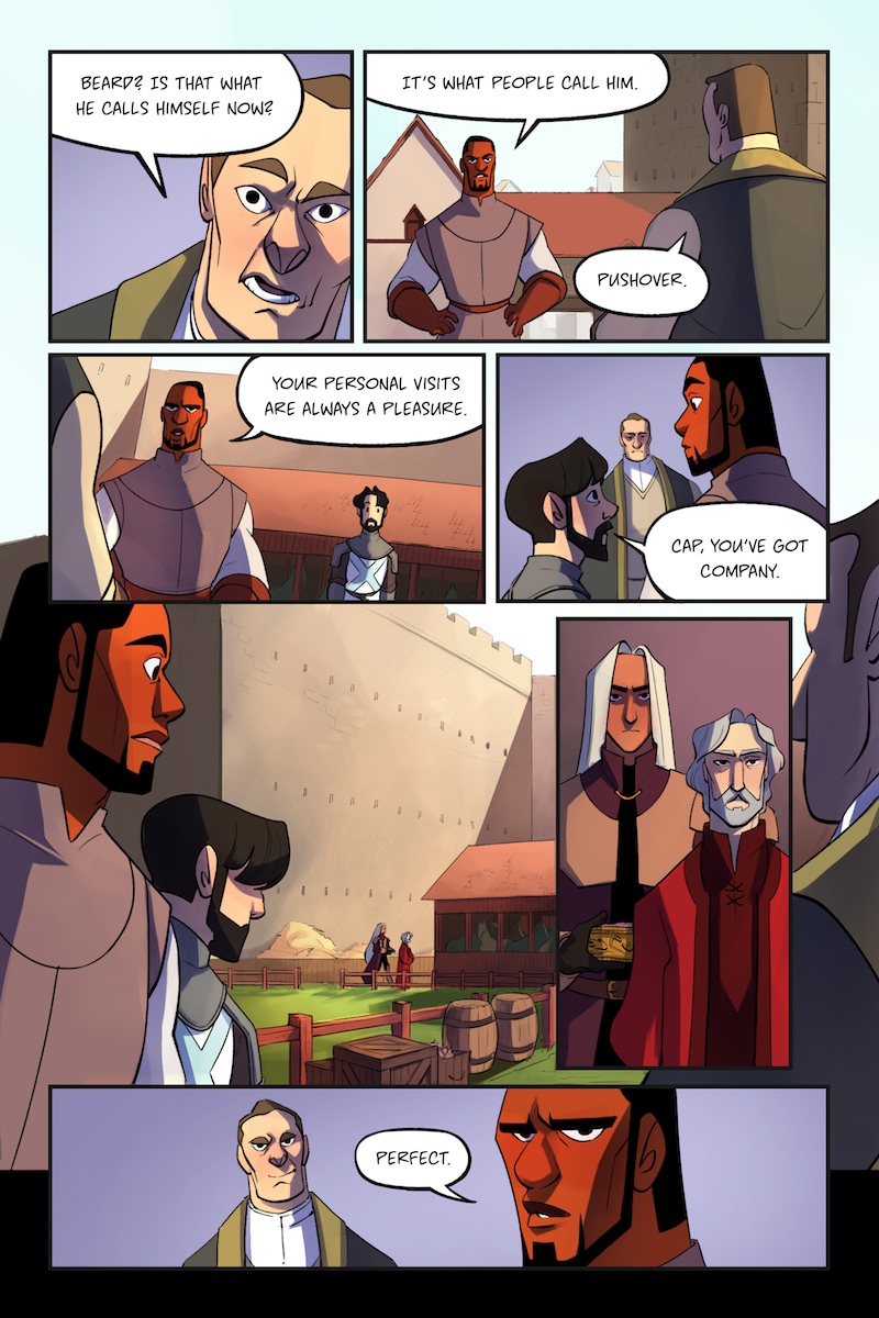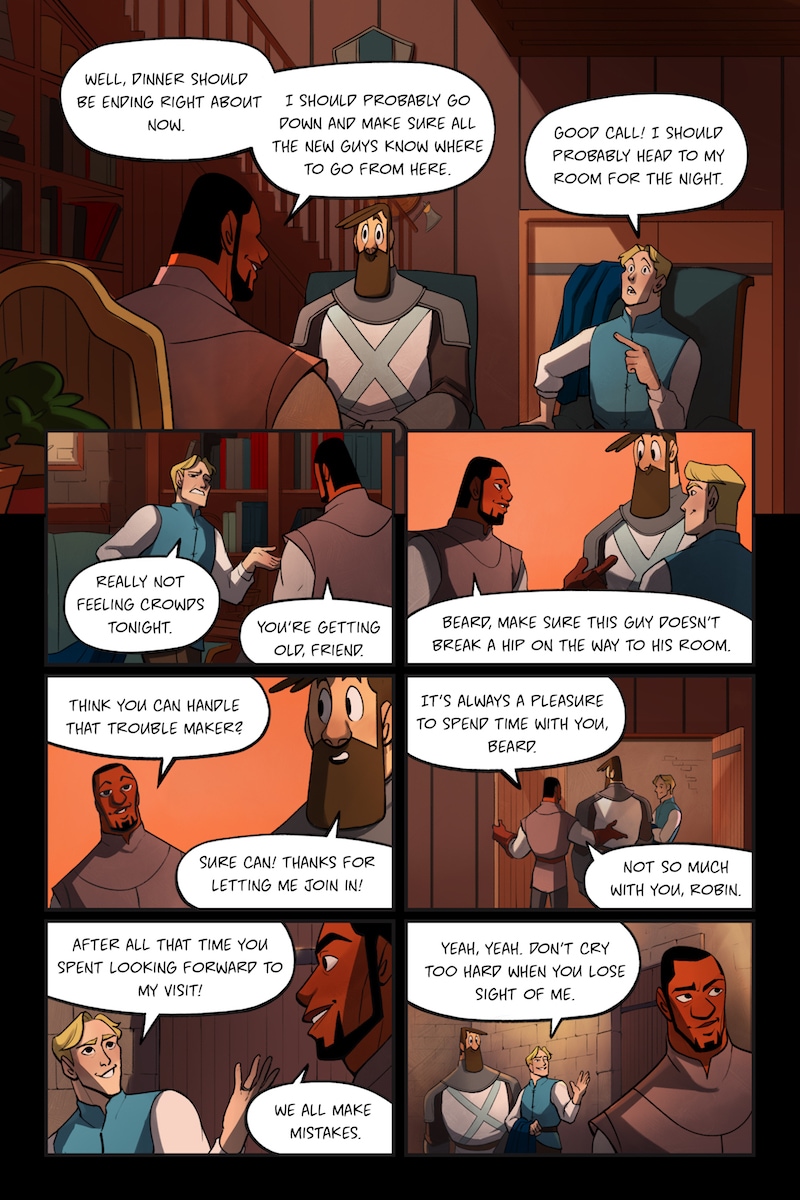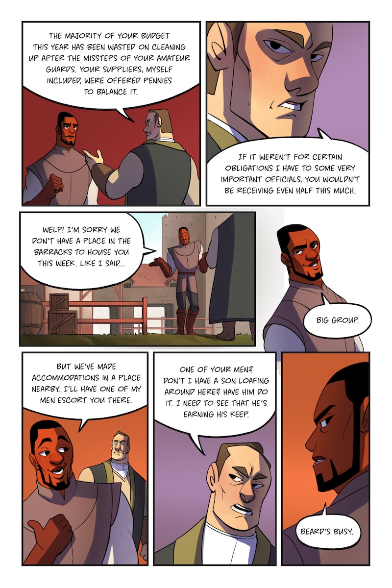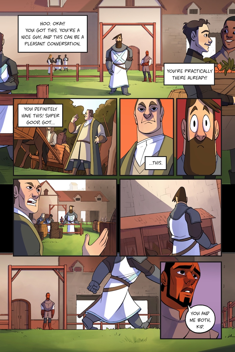 Knight and Beard is a buddy comedy set in the medieval times. Knight is an unruly noblewoman who dreams of becoming a hero, but her privileged upbringing hinders her battle. Beard, on the other hand, is a man with the build of a warrior, but a gentle and loving soul.
