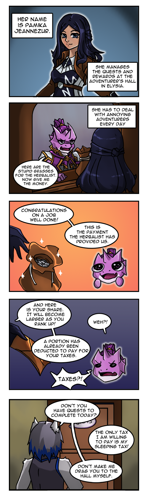 A fantasy world where you only get 40-50% of the reward posted for a quest because you have to pay the taxes.