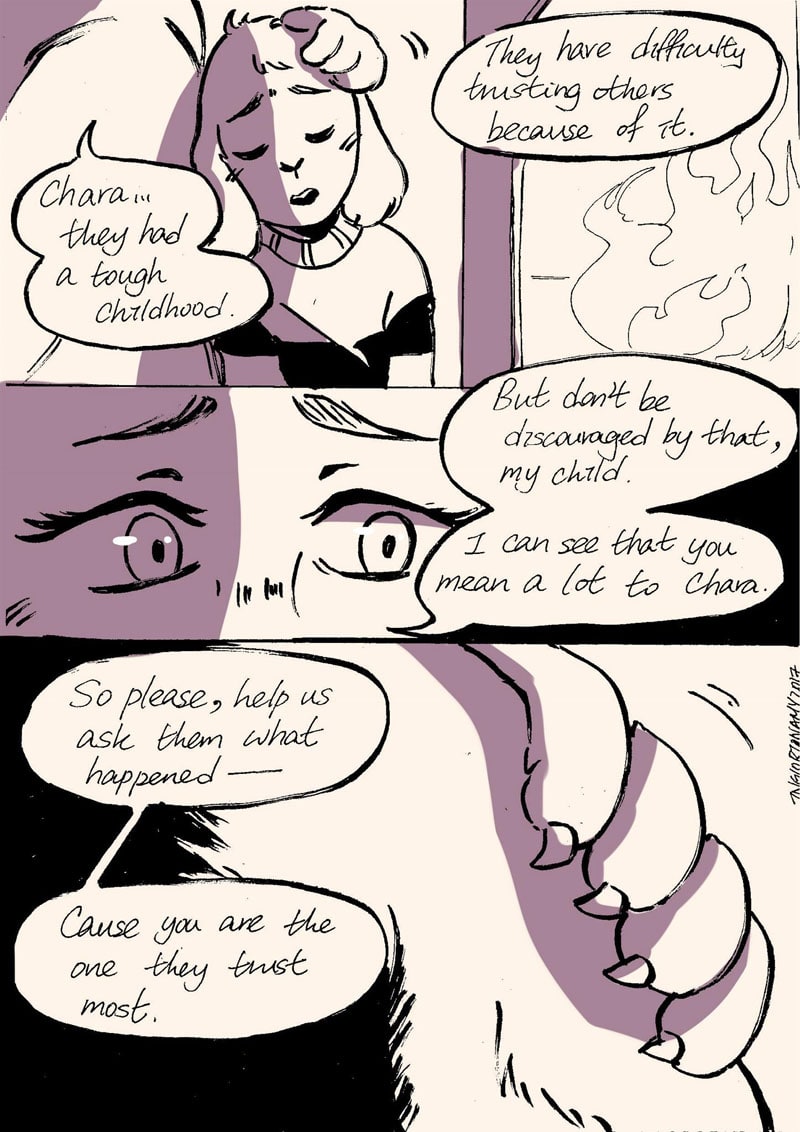 The tale before the well-known adventure in Undertale, bear witness to the story of the first fallen human.... (Disclaimer: All characters and settings that are set in this fan comic belong to Undertale's respective creator and owner, Toby Fox. This comic is non-canon and in no way meant to "cash in" on Fox's intellectual property and is only meant for entertainment purposes. We're just showing our appreciation for his creation.)