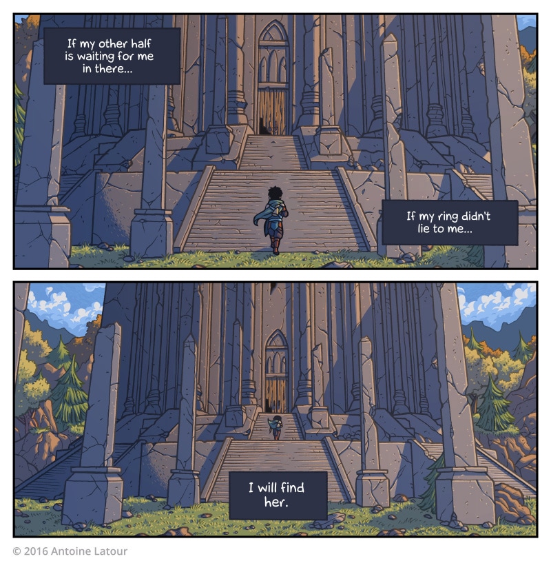 In a world where everybody has a ring that warms up the closer they are from their other half... Two people whose ring always stayed cold decide to risk their life in a treacherous tower on the off chance that they might be able to find each other. He's at the bottom, she's at the top; will they finally come together in the heart of the ruins?