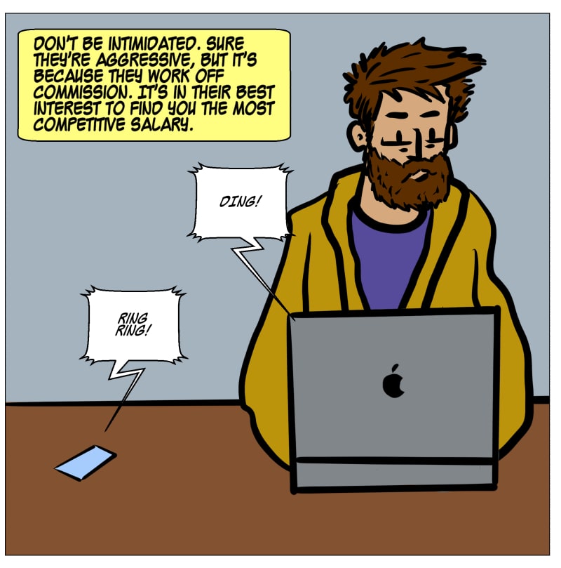 Recruiters are cool for the most part, but I've met quite a few that are a bit on the...aggressive side.