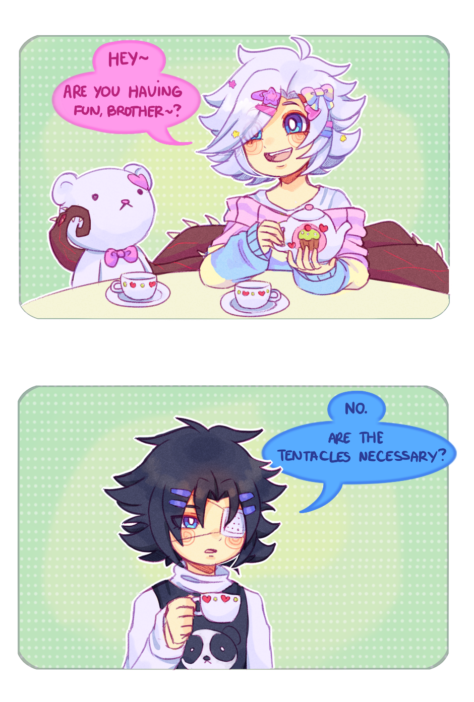 I cant this comic legit is all my fav things two cute brother protagonists, horror, and adorable ness plus beautiful art! Thank you so much for taking time and composing this beautiful comic!