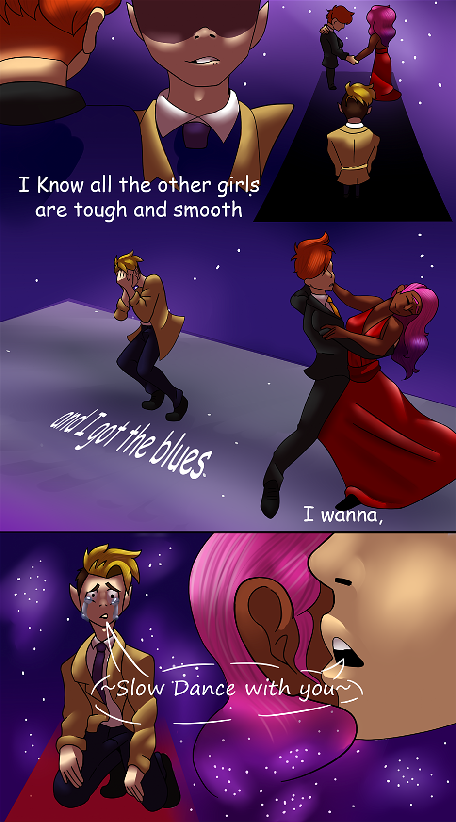this idea mainly formed when I first listened to the Adventure Time song "Slow dance", the rest of it comes from me personalizing the situation a bit.