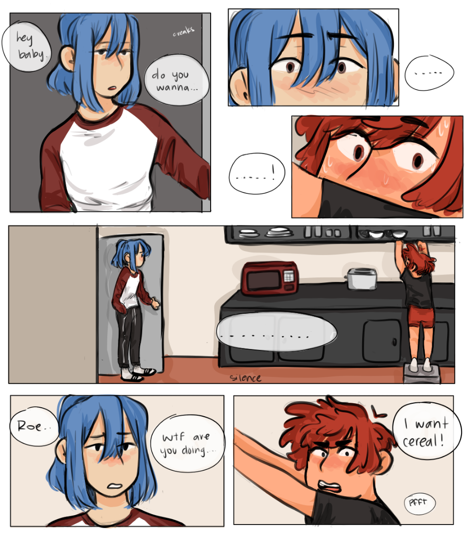 he just want he cereal (hihi i havent been posting any comics bc ive been trying tk work on my main comic, plus some other side stories, but ill try to post when i can! you can keep up w me on my instagram, @ixiummus, where i post content frequently though!)
