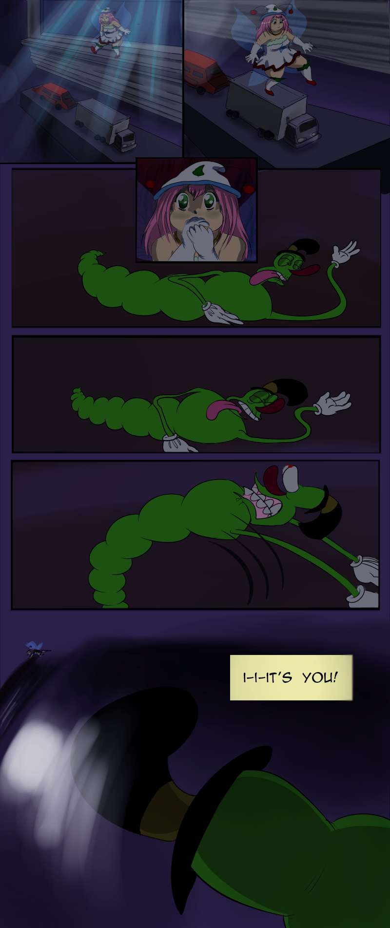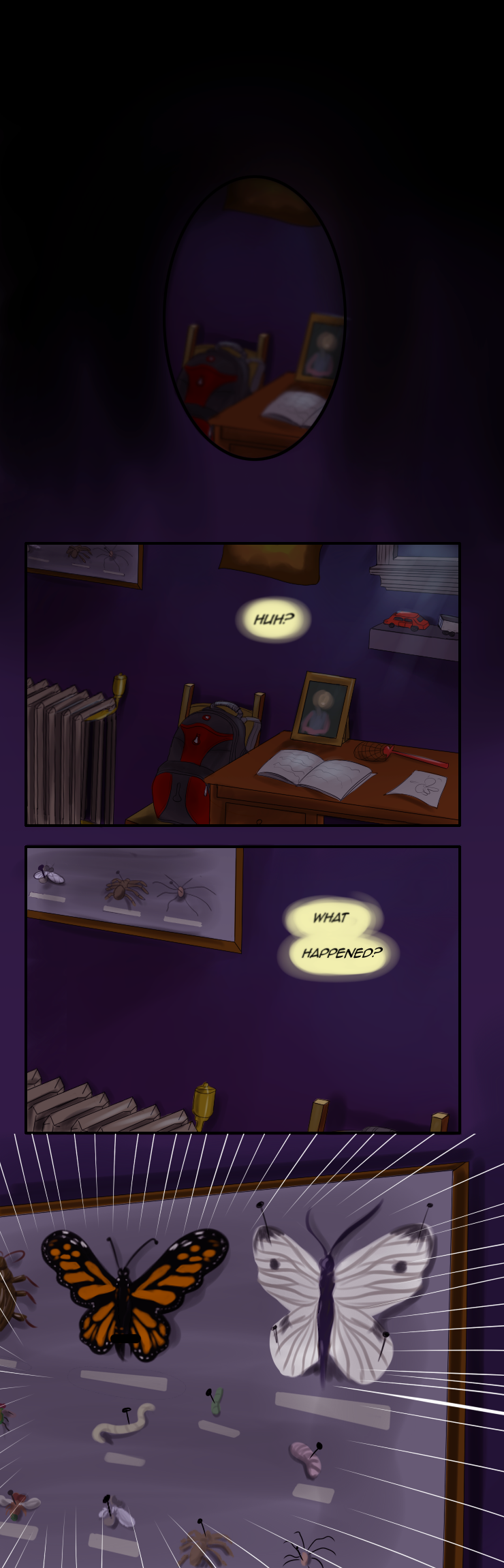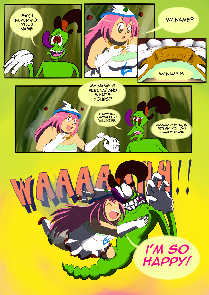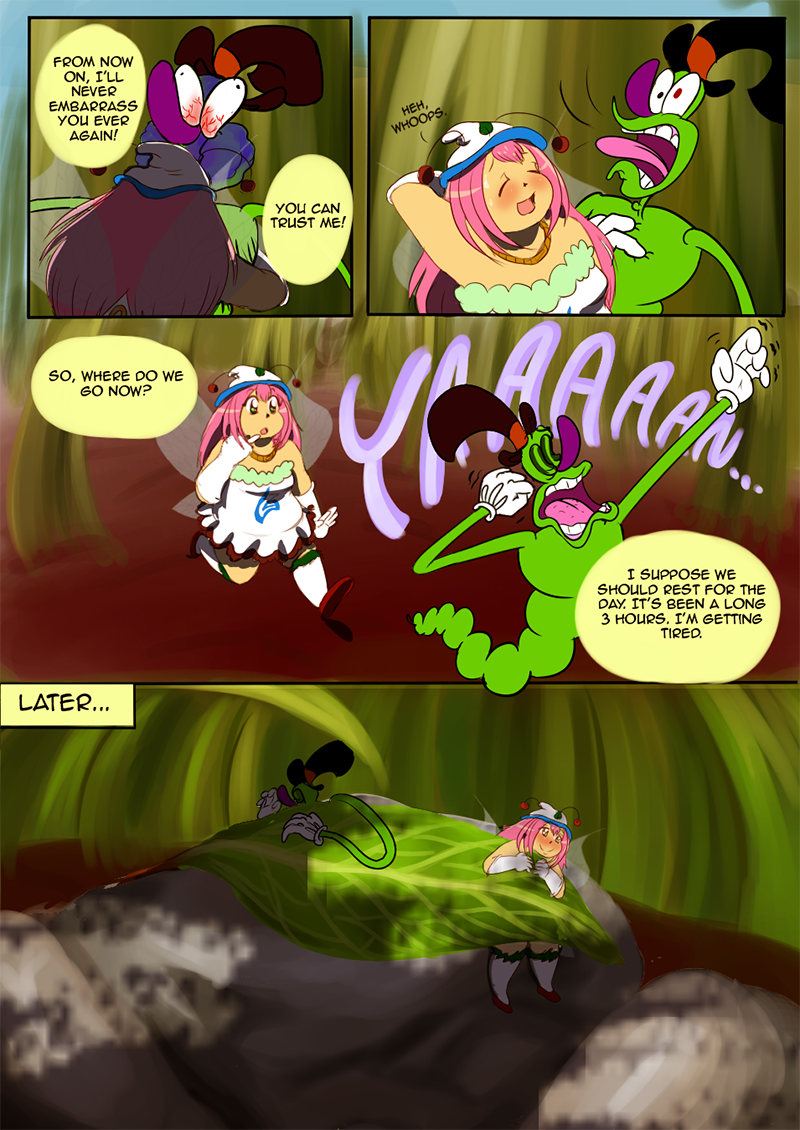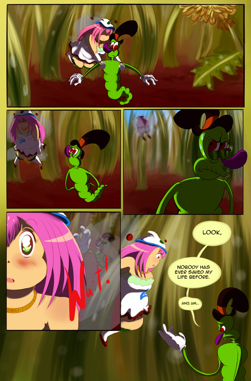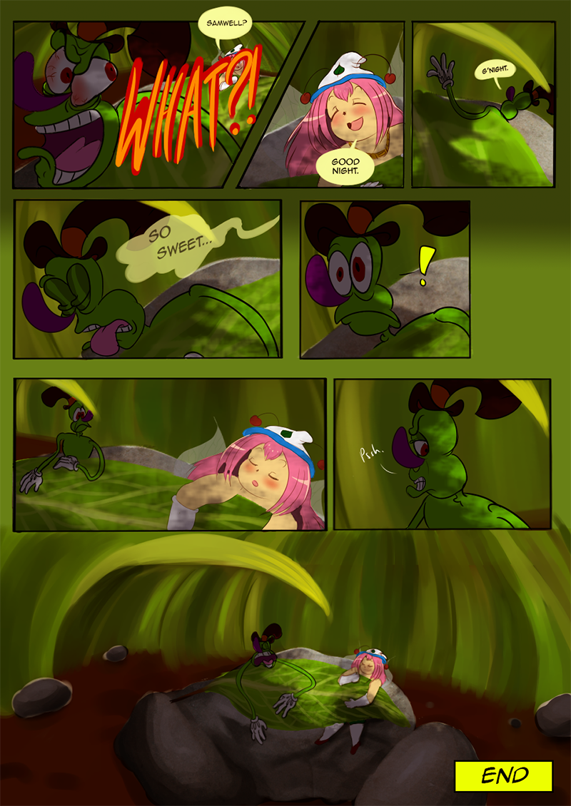 That boy who caught Samwell is so scary - that's probably how insects see humans in general. LOL Really great colours, backgrounds and character's facial expressions! Looking forward to what happens next in the story.