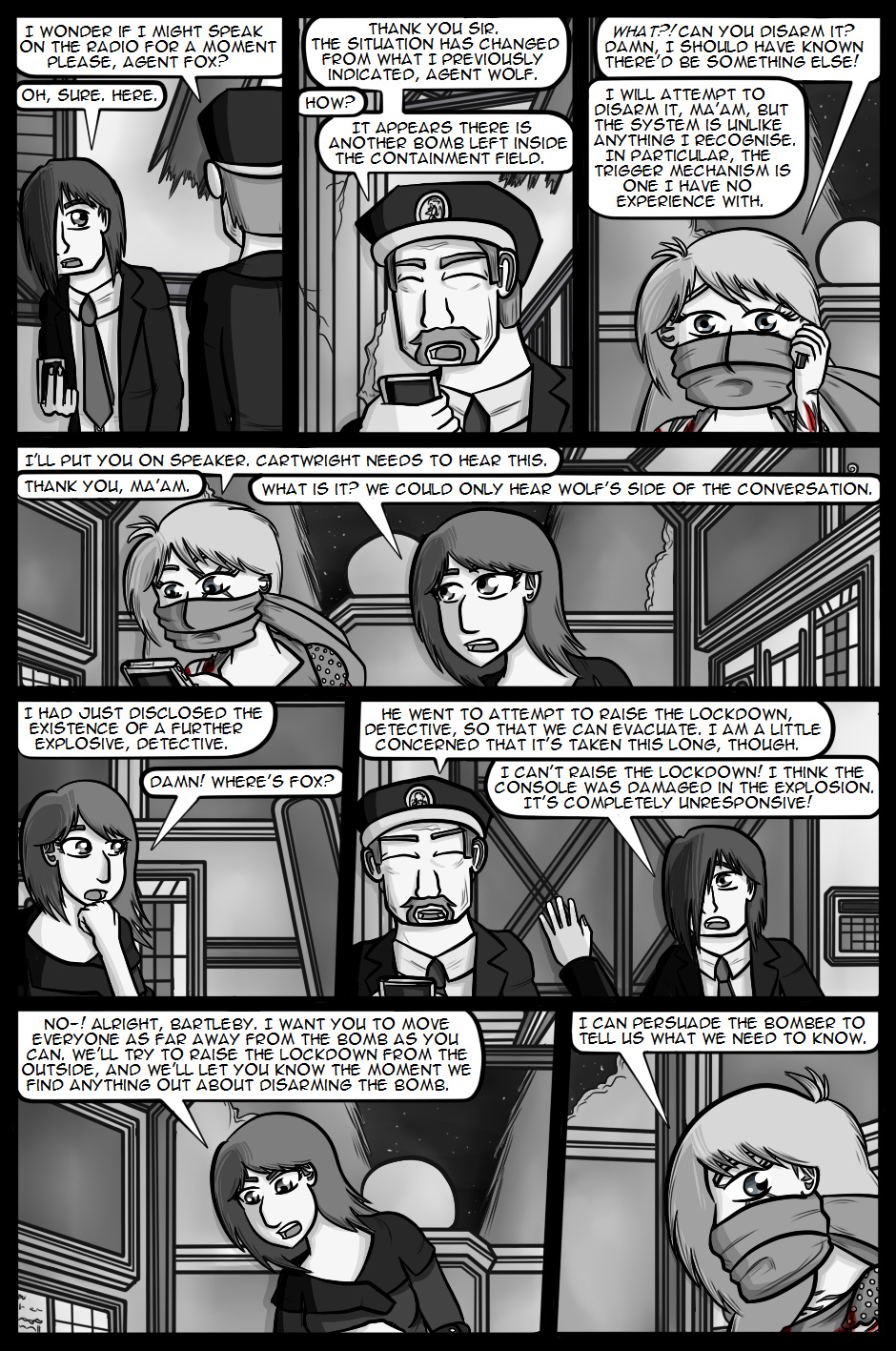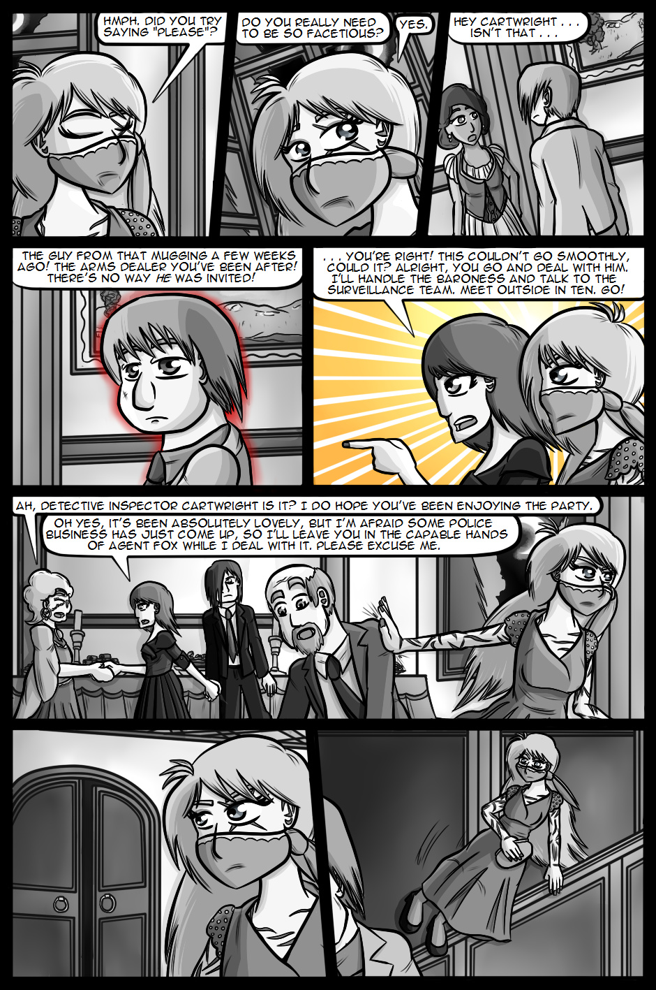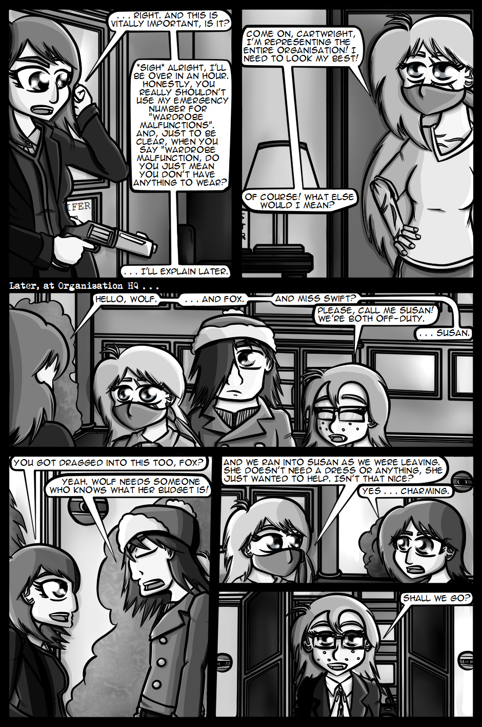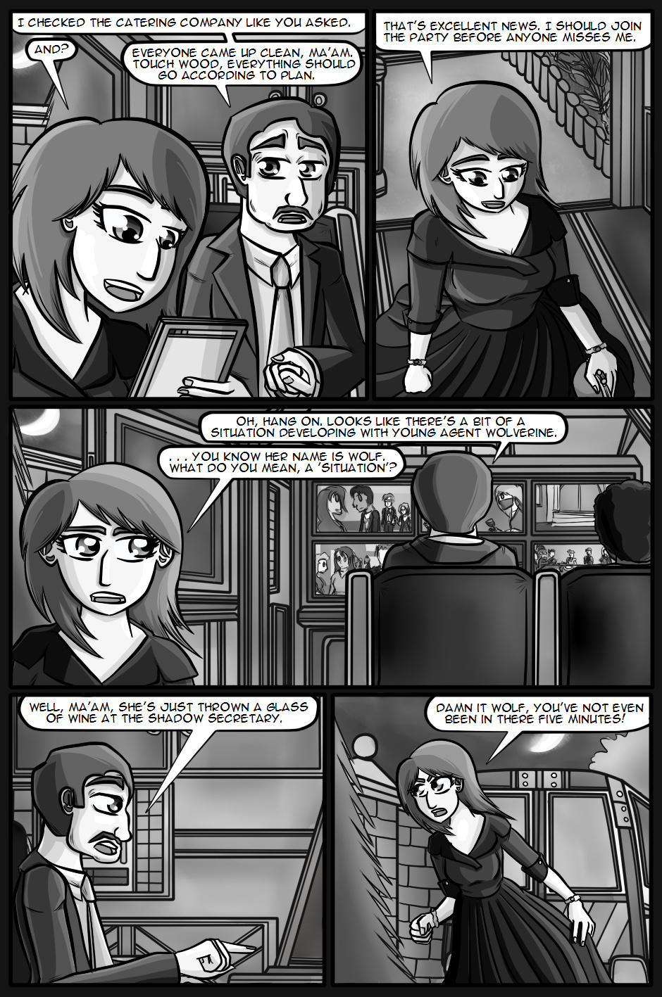Cartwright returns to active duty hoping that the Internal Investigations team will be able to solve the mysteries and lay the O'Farrell case to rest. However, one of her first duties now that she's back is to attend and provide covert security at a large party being held by the Secretary of Defence with her favourite Organisation agents, Wolf and Fox.