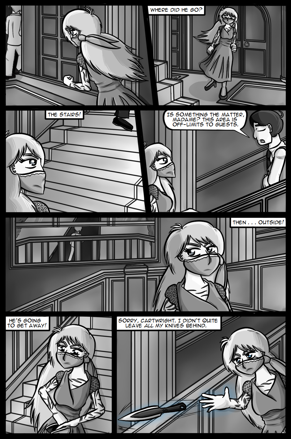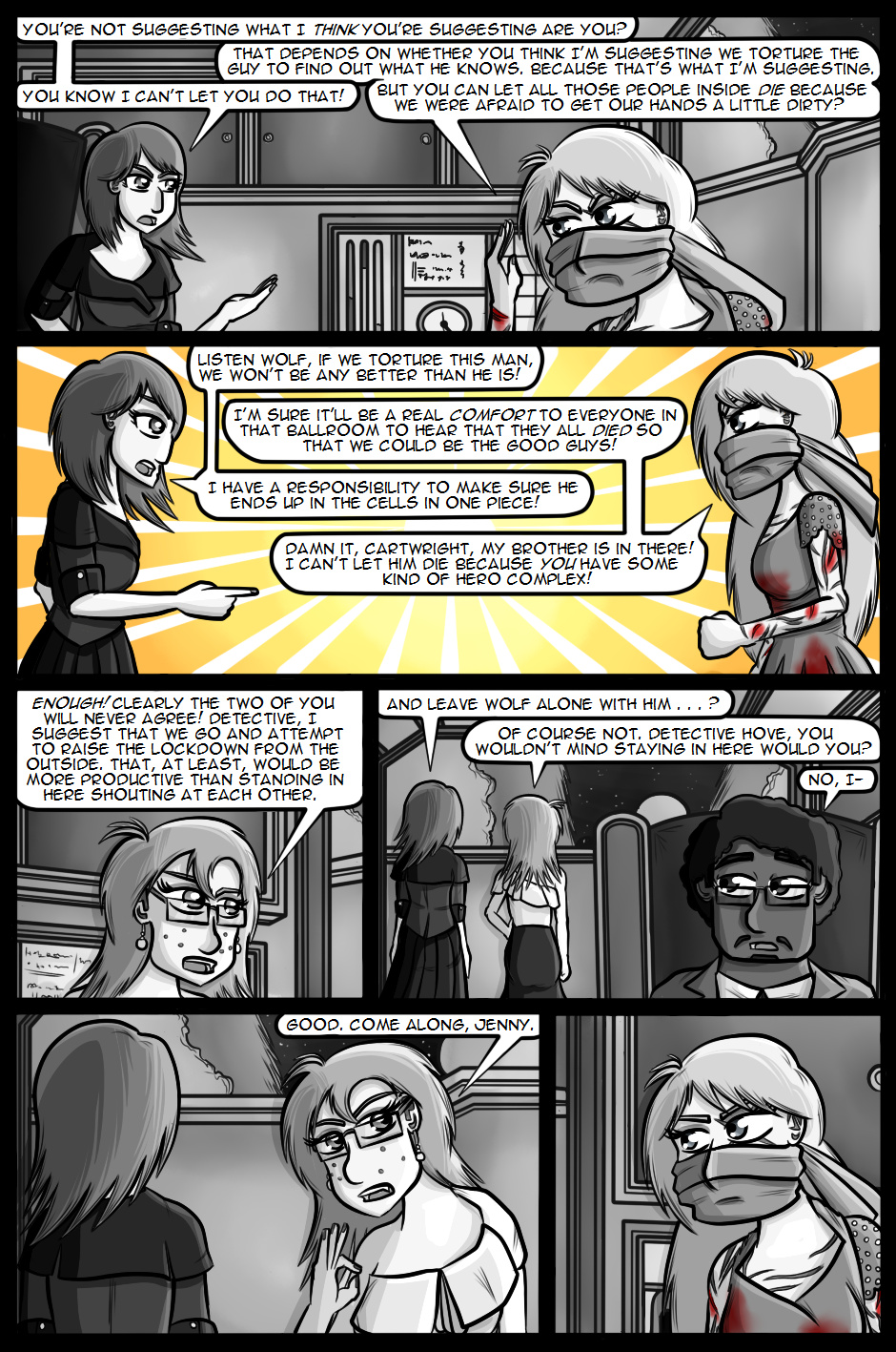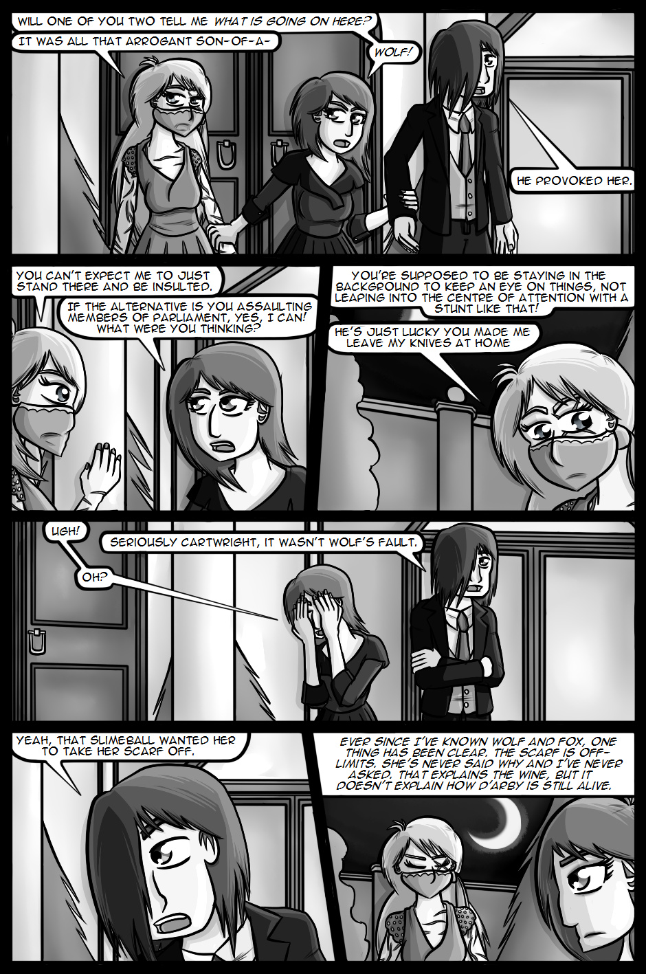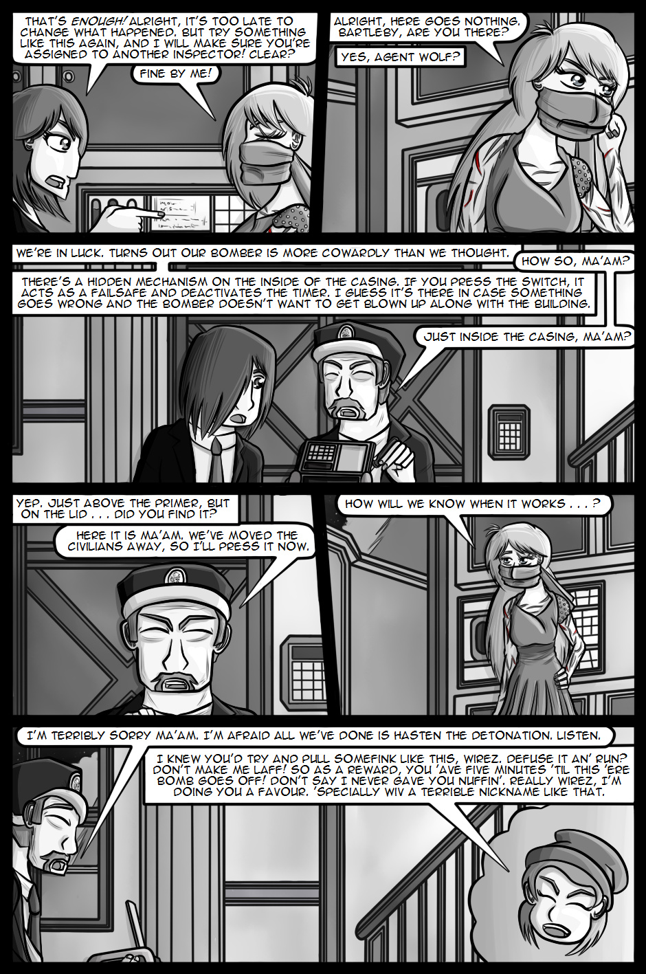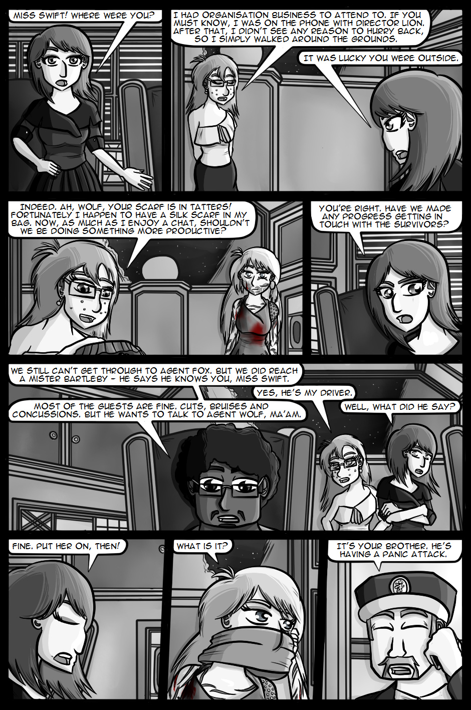 Cartwright returns to active duty hoping that the Internal Investigations team will be able to solve the mysteries and lay the O'Farrell case to rest. However, one of her first duties now that she's back is to attend and provide covert security at a large party being held by the Secretary of Defence with her favourite Organisation agents, Wolf and Fox.