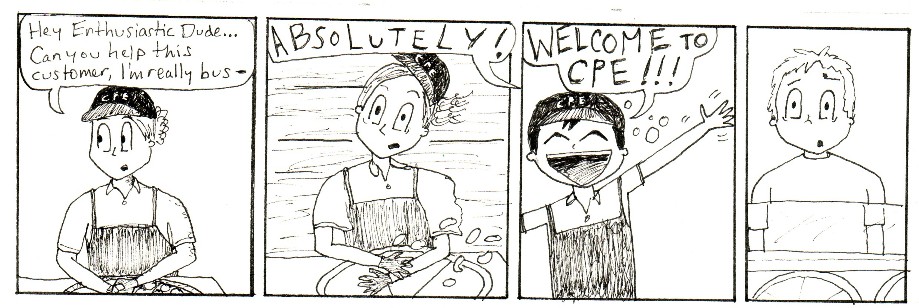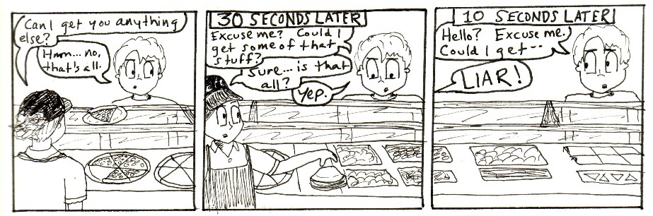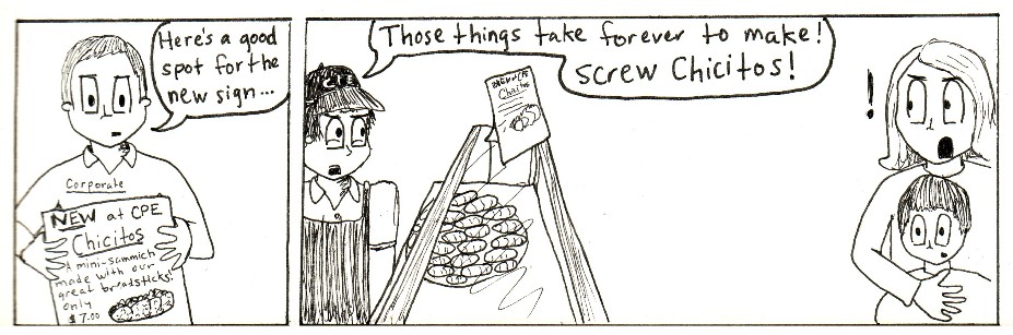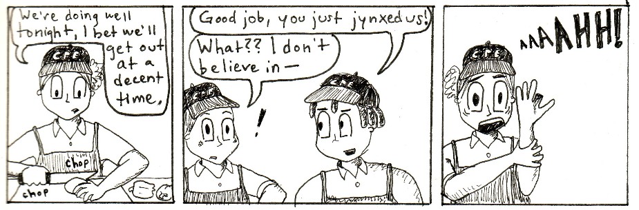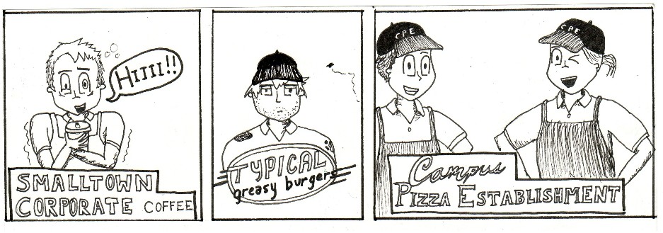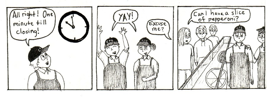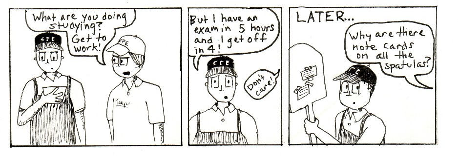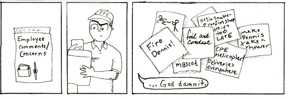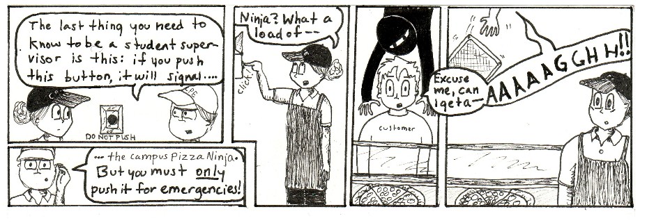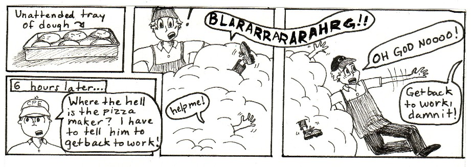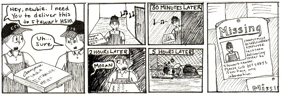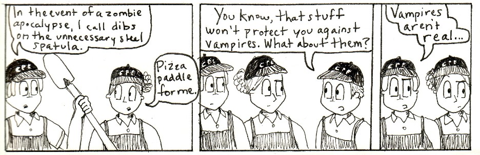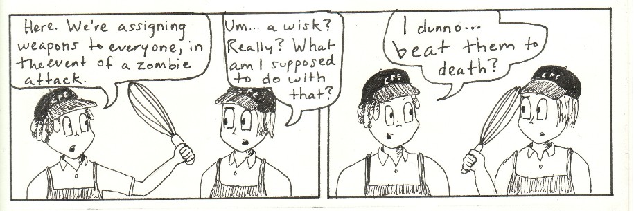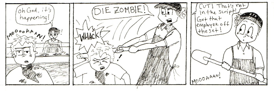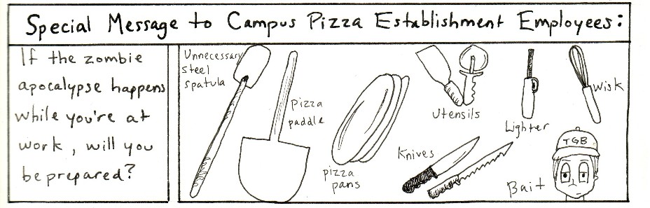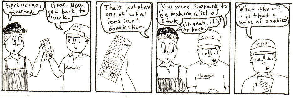 This is a series of comic strips I made with work friends while going to Purdue and working in the Purdue Memorial Union at Villa Pizza. Zombies were a top concern in those days.