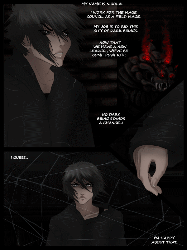 NIK is about a young man who is half warlock (Dark magic) and half mage (Light magic). He was raised by mages and grew up believing in the horrible things he was taught about warlocks and witches. He was outcasted by his peers and resented his warlock half greatly. As the mages pushed forward in their attempt to rid the world of dark-magic users, Nikolai meets a blue haired warlock who, "unintentionally", leads him to find out the truth about dark beings. They ARE horrible, but maybe it is wrong to kill them all? And who really deserves to judge others? Definitely not mages. Mages are pricks.