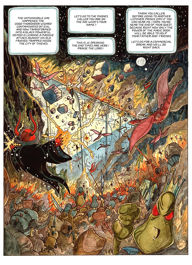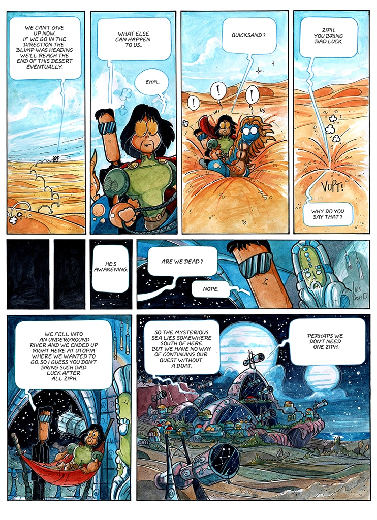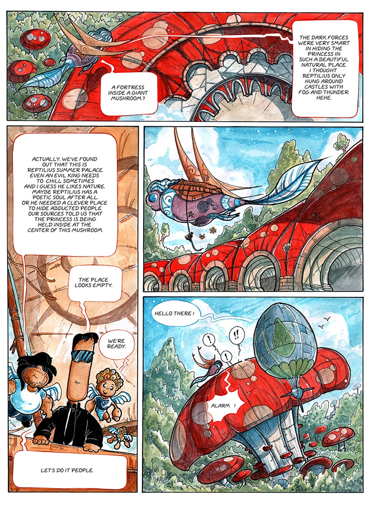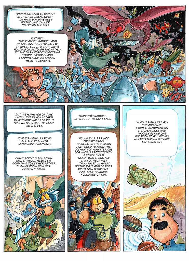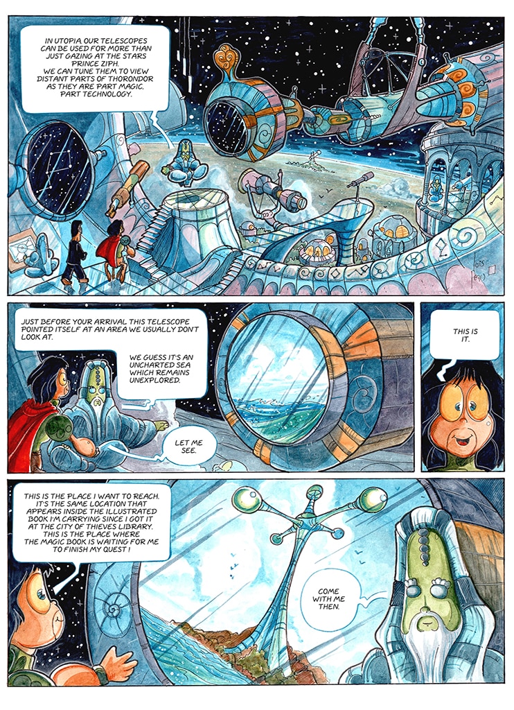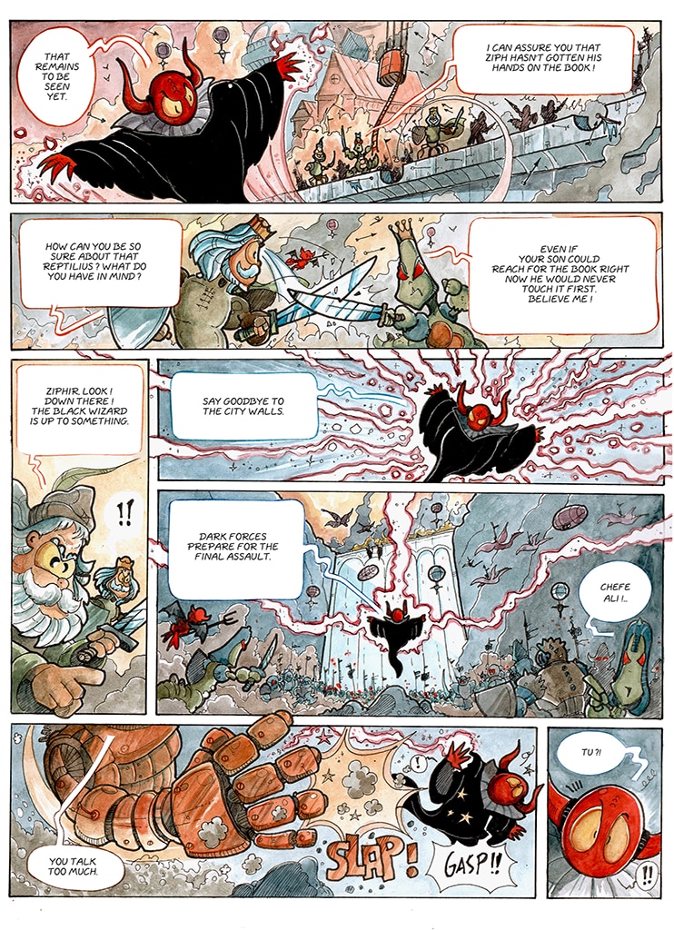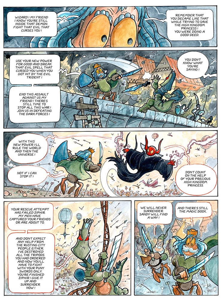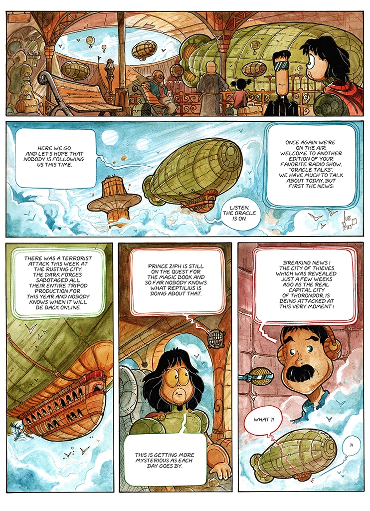 Talking martian spiders as heros, wizards that float a lot, bad guys that are green with envy, lost magic books, steampunk cities, teleporting mirrors, lovely heavenly creatures, alien technologies and spaceships. What more do you want ? Oh, there is life after...death too.