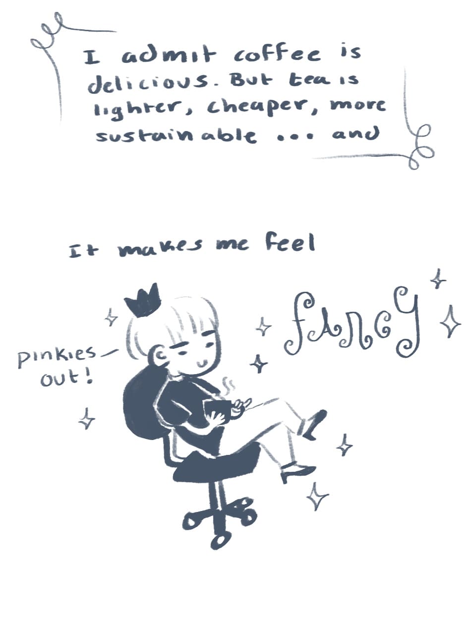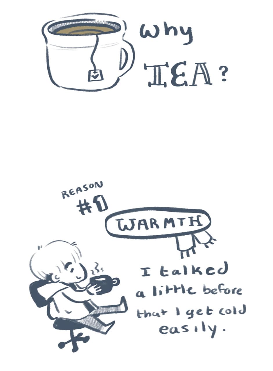 I feel you. I'm also small but I also have bad circulation and depression (both lower body tempature) so the doctors always think I'm sick. Tea is better than coffee because of the variety as well