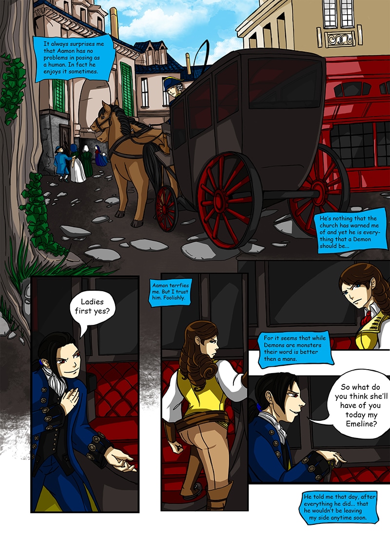 Emeline has struck a bargain with the Demon Aamon in order to save her life from the guillotine during the Reign of Terror. Now begrudge she is tethered to her supposed savior as the two work in shadow to uncover some nasty truths of the French Revolution, and the people pulling the strings. In the end Emeline must ask herself, are these people more monster then man, and how many will she have to cut down before this ends and her soul is eternally claimed by the demon she strives to fight away from.