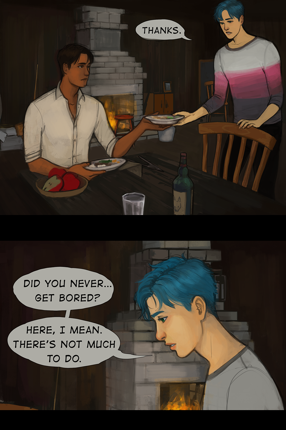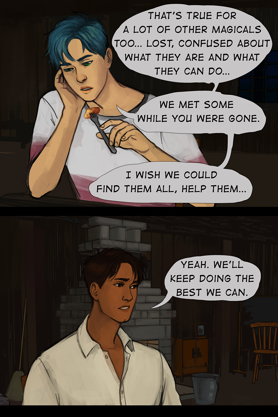 Like always, ur art brings a smile to my face, really looking forward to the next chapter! Quick question: are they not a using a blanket because magicals are homeothermic/warm-blooded, or because u wanted to show off their pecs? Lol