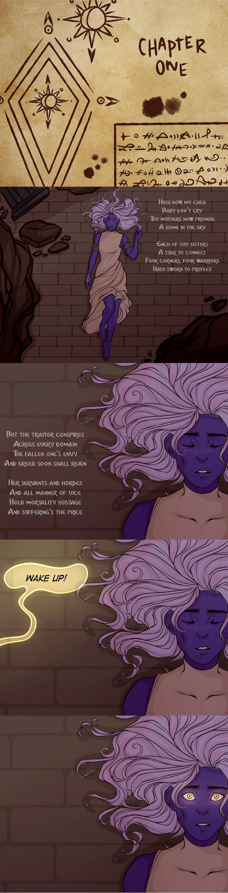 “Constellation Grimm” is an LGBT Fantasy story that follows the journey of a strange amnesiac girl nicknamed ‘Sunshine’ as she struggles to regain back her lost memories. She awakens to a world filled with magic, celestial beings, immortals, and the promise of the planet’s imminent demise – a promise that only she can break.