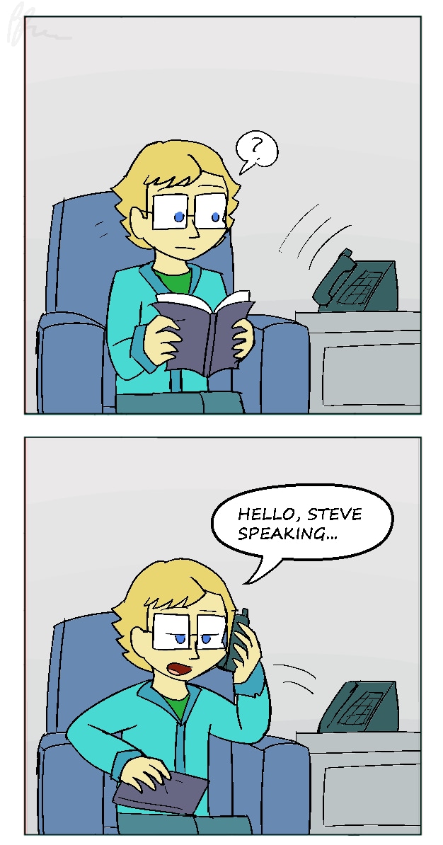 Characters: - Steve (Has a book) - Frank (Has a phone)